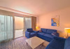 Cazare confortabilă: Camerele oferă aer condiționat, balcoane, băi private și vedere la mare sau la munte. Facilitățile includ o piscină privată, o canapea extensibilă și izolare fonică.
