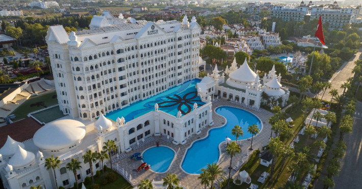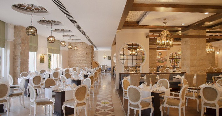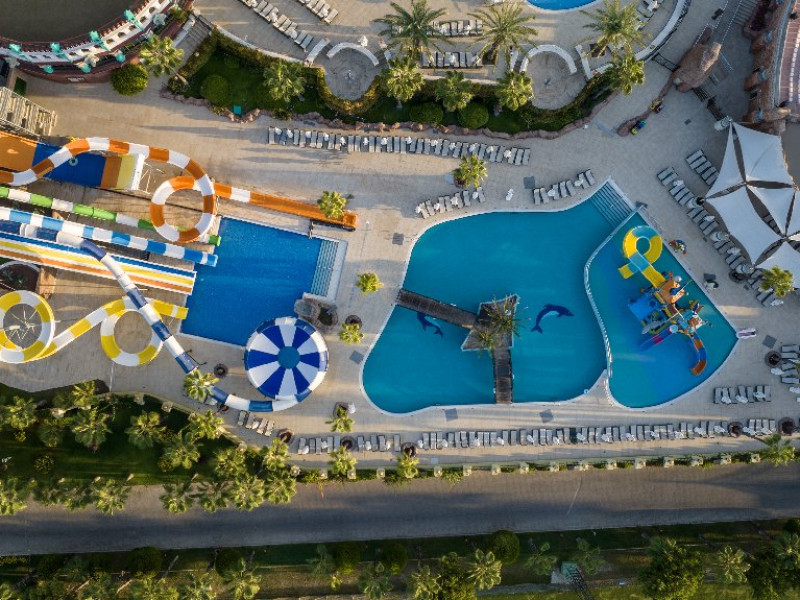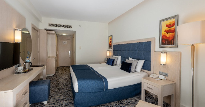Facilitati hotel: Hotelul pune la dispozitia oaspetilor: restaurant principal, restaurante a la carte, 5 baruri, piscina exterioara, piscina interioara, piscina relaxare, aquapark, animatie, discoteca, mini si junior club, mini zoo, tenis, 3 terenuri fotbal, volei pe plaja, aerobic, sala fitness, centru Spa.