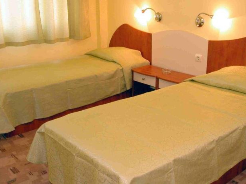 Dotari camere: Hotelul are 6 apartamente, 74 camere duble si 3 camere single. Este reconstruit si renovat in 2003 2004. Camerele sunt echipate cu mobile noua si moderna, mini-bar, telefon, TV prin satelit, baie cu dus, balcon, 70% din camere au vedere la mare si 30% au vedere la parc, cu posibilitate 2 paturi suplimentare. Majoritatea camerelor sunt cu living, o parte din ele cu masa si 2 fotolii.