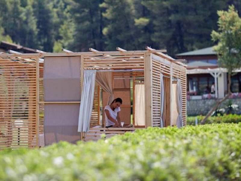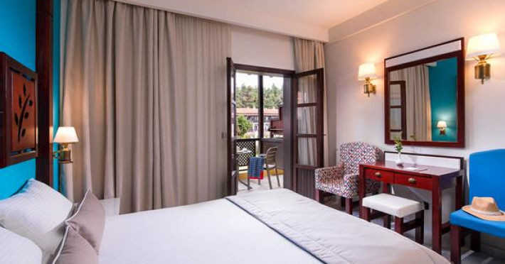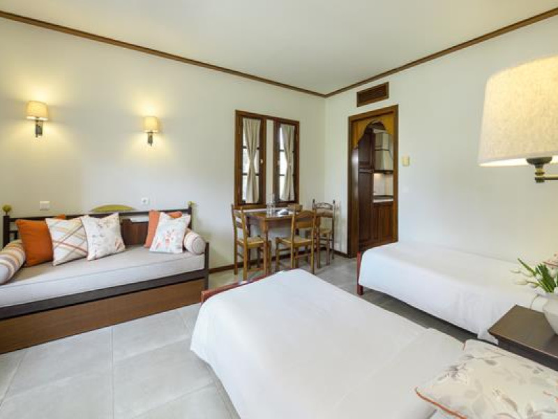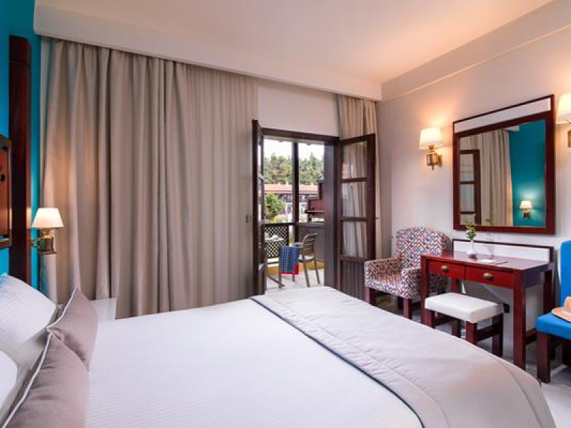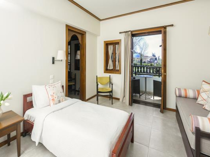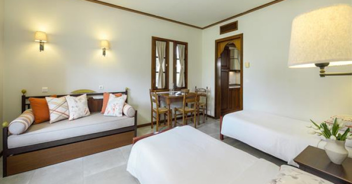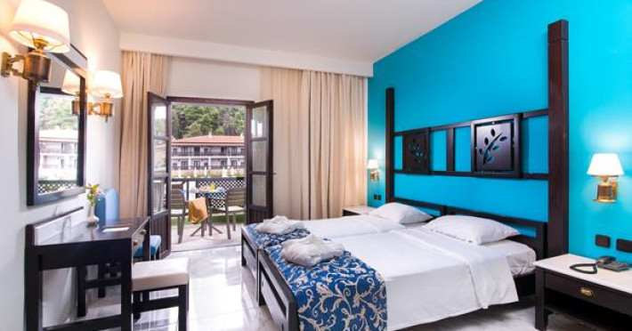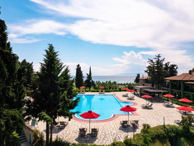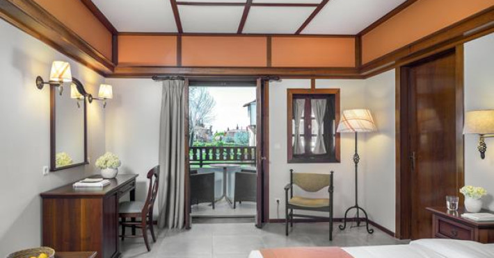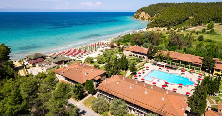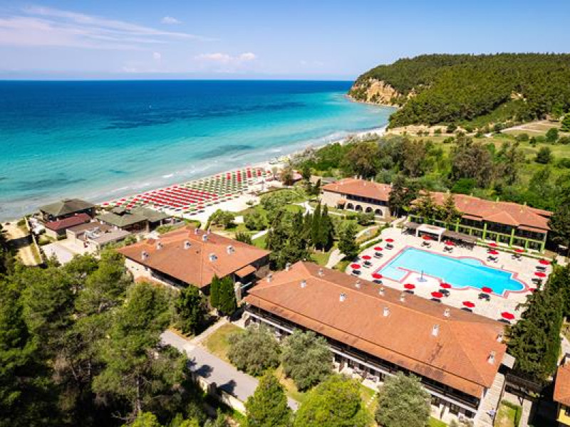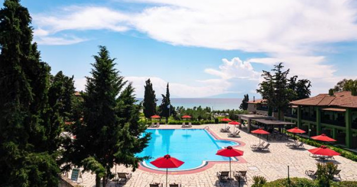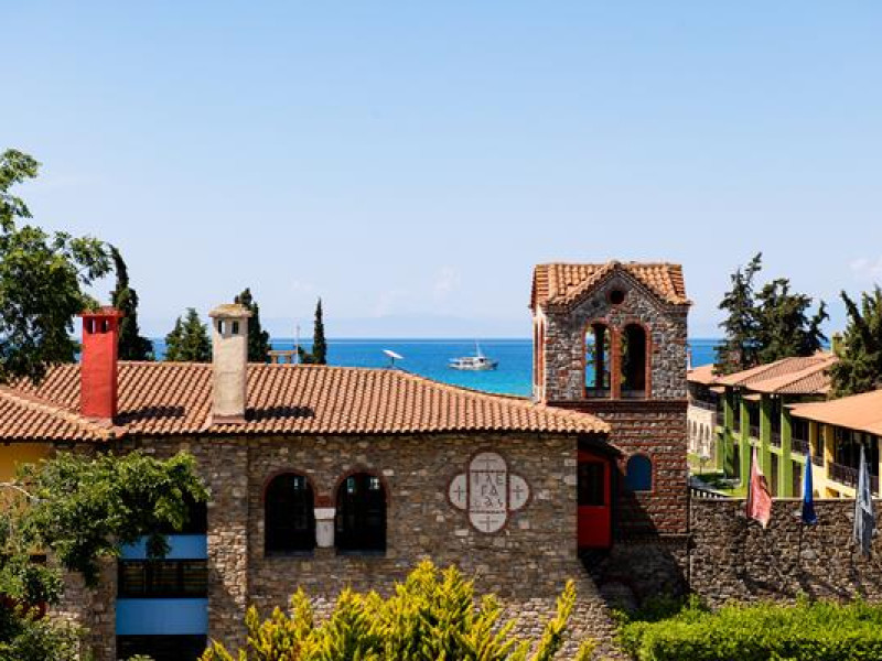 The ‘Simantro Beach Hotel is characterized by its unique Byzantine elements. The fact that it was built like the famous monasteries of Mount Athos makes the guest feel the serenity and natural beauty.