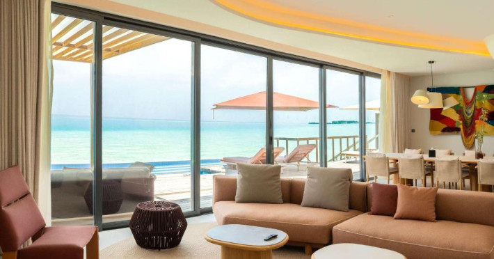 SO/ Maldives se află pe malul mării in South Malé Atoll și oferă cazare de 5 stele, o grădină, o zonă de plajă privată și un lounge comun. Printre facilitățile disponibile la această proprietate se numără room-service și un serviciu de concierge, precum și WiFi gratuit in intreaga proprietate. Acest complex oferă o piscină in aer liber, un centru de fitness, divertisment de seară și un club pentru copii.