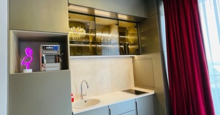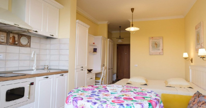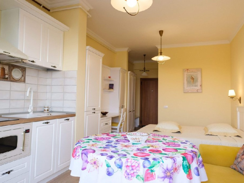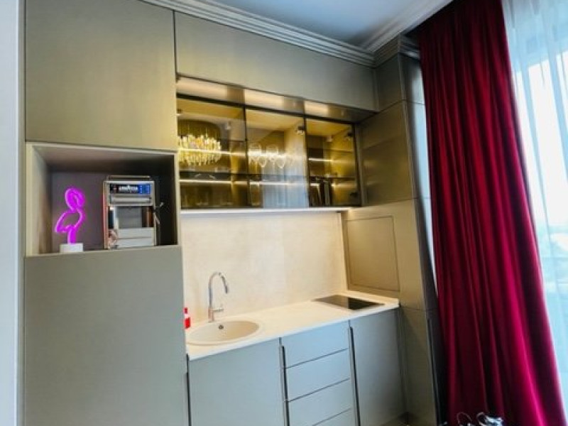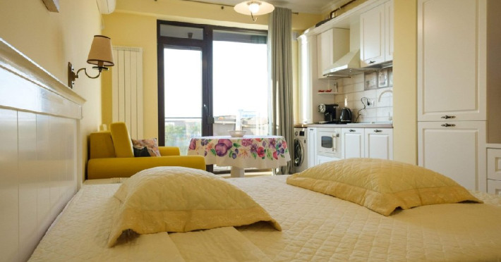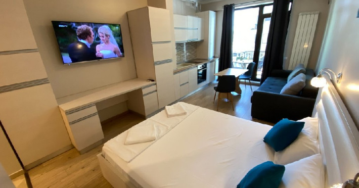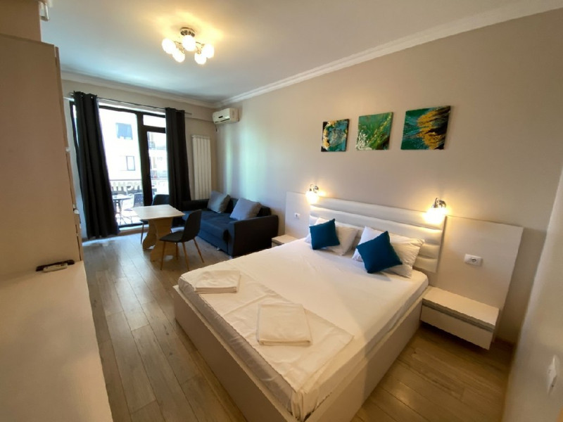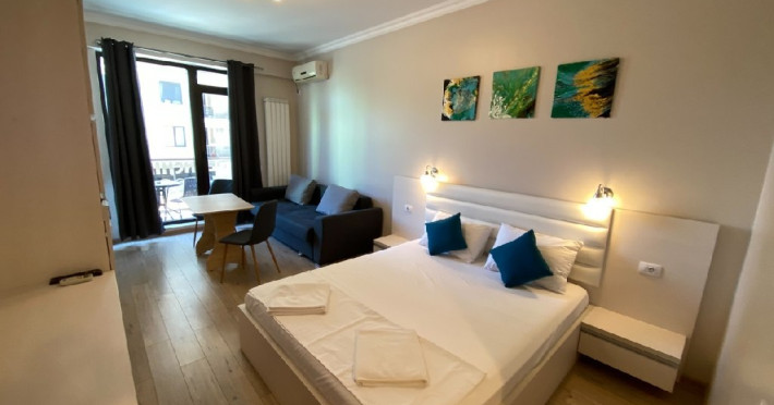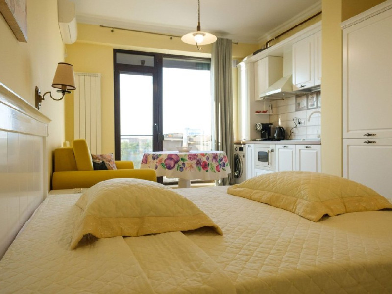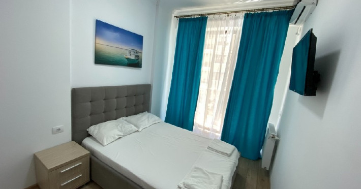 Garsoniera Are 1 camera cu pat matrimonial plus canapea extensibila, bucatarie complet mobilata si utilata, baie dotata cu cabina de dus. Garsoniera poate acomoda 4 adulti sau 2 adulti plus 2 copii. Facilitati oferite de Garsoniera Aceasta proprietate este situata in centrul Statiunii Mamaia (la 150 de metri de plaja si la 300 de metri de Casino Mamaia), pe malul lacului Siutghiol, in incinta modernului complex Solid Residence, finalizat in Mai 2019. Detalii locatie si locuinta: a vedere bulevard a localizare excelenta a parcare subterana si supraterana a paza 24h 24h a supraveghere video a lift modern Dotari: a Wi-fi gratuit a cablu TV cu grila extinsa de programe a TV LED in fiecare camera a aer conditionat in fiecare camera a centrala termica proprie cu detector de gaze a plase de tantari a uscator pentru prosop a fier de calcat, masa de calcat a aspirator a uscator de par a masina de spalat automata rufe Garsoniera este in imediata apropiere a plajelor amenajate si a restaurantelor vis a vis de hotel National). Se afla la cateva minute de mers cu masina de cluburile din Mamaia Nord sau de Portul Tomis din Constanta. Alte observatii: a Fumatul este permis doar pe terasa