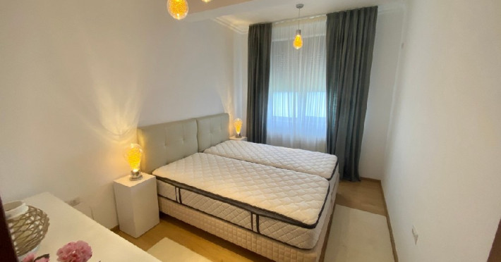 Apartamente 3 camere Apartamentele sunt alcatuite din 3 camere: living, 2 dormitoare, bucatarie complet mobilata si utilata, baie dotata cu cada si o baie cu cabina de dus, terasa. Dormitoarele sunt amenajate cu cate un pat dublu matrimonial fiecare, iar living-ul detine o canapea extensibila. Toate spatiile sunt generoase, amenajate ultramodern. Apartamentele au vedere la lac din balcon. Dormitoarele sunt amenajate cu cate un pat dublu matrimonial fiecare, iar living-ul detine o canapea extensibila. In living pot dormi minim 2 turisti. Toate spatiile sunt generoase, amenajate ultramodern.