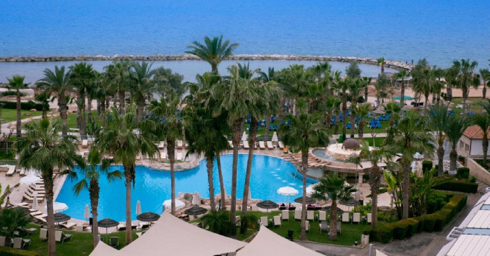 Descriere: Hotelul St. George din Paphos, Cipru, este situat pe 7 arii de teren, dintre care o treime sunt gradini amenajate, marginite de dealuri ondulate pe de o parte si de Marea Mediterana pe de alta parte.