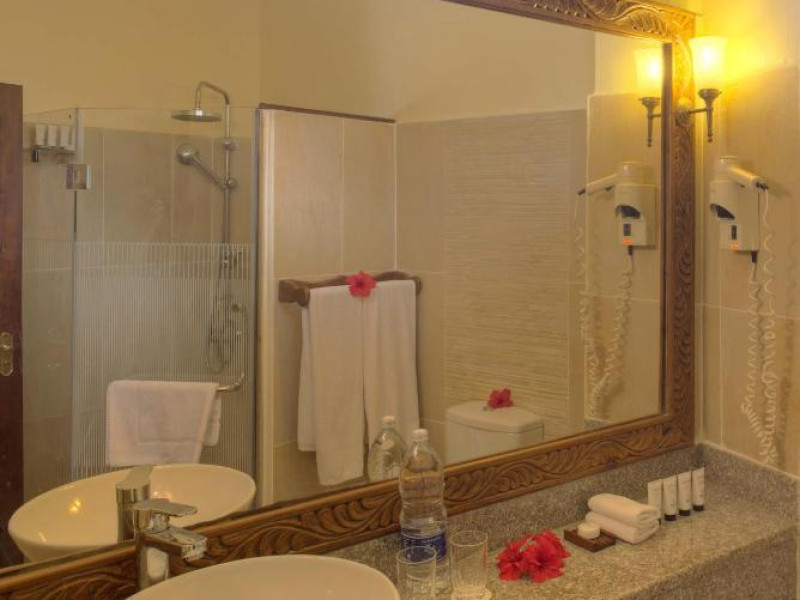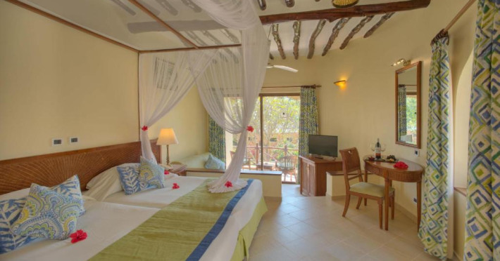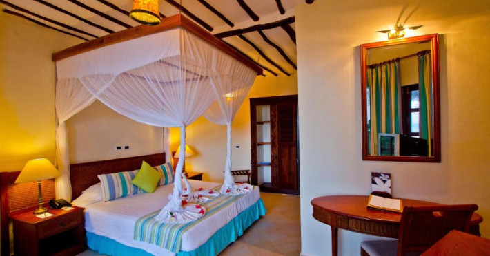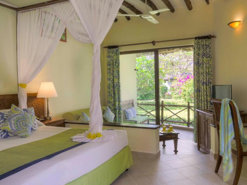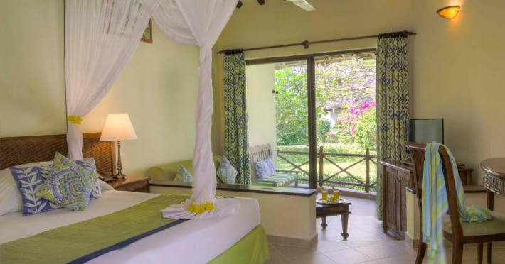 Camerele sunt amenajate in bungalouri tradiționale cu acoperiș din frunze de palmier și oferă vedere spre grădina tropicală sau ocean. Resortul dispune de două piscine inconjurate de șezlonguri, centru spa cu tratamente tradiționale africane, și trei restaurante care servesc atat specialități locale, cat și internaționale.