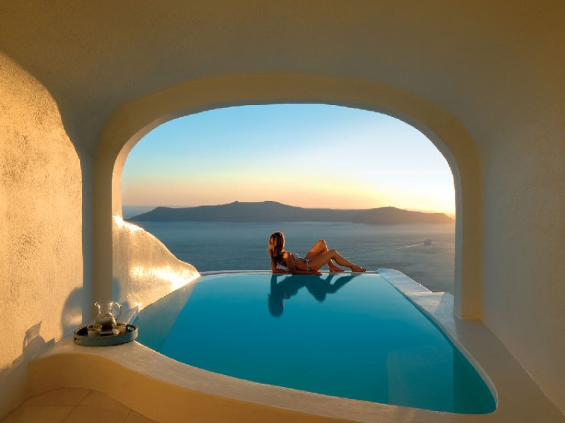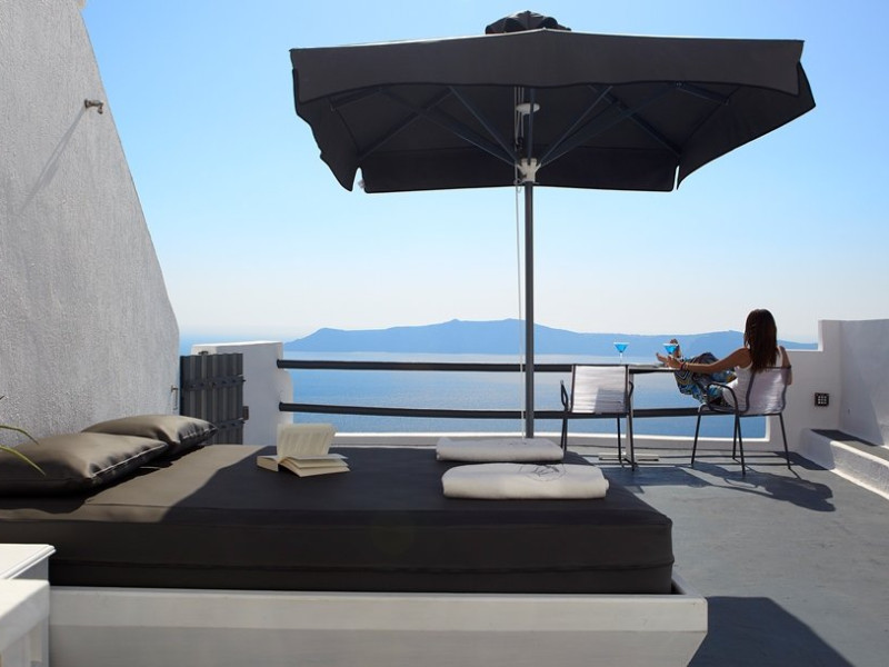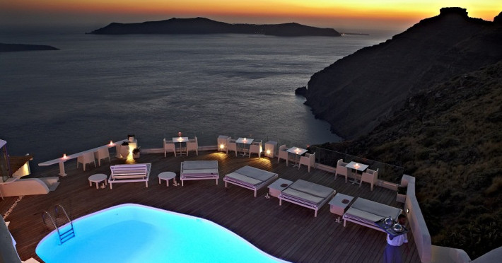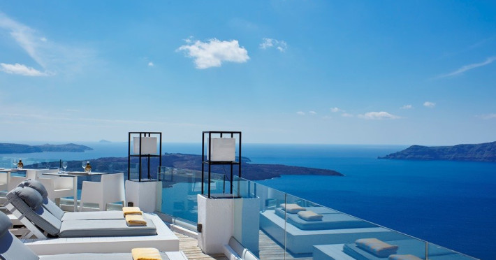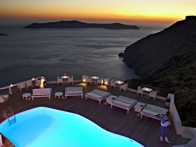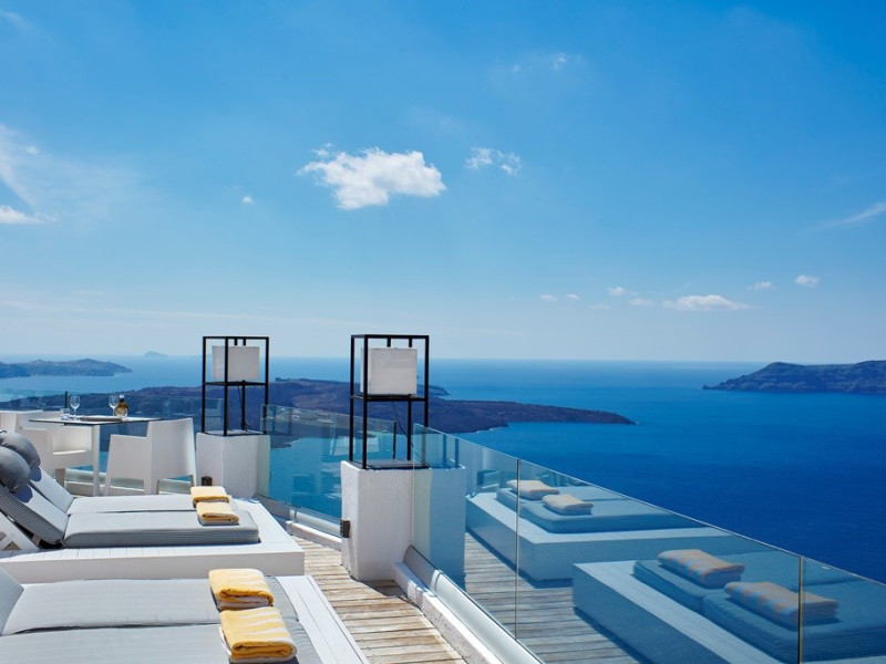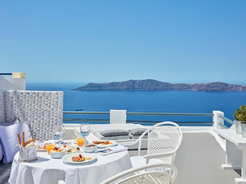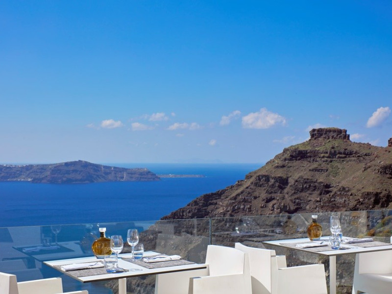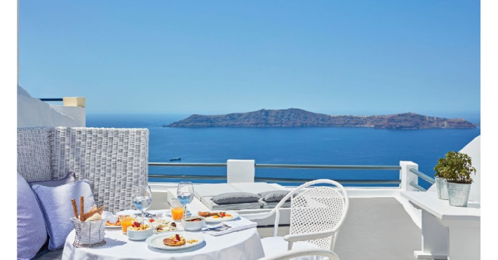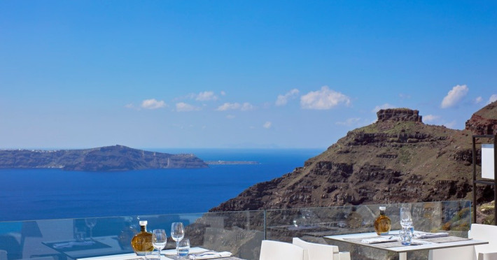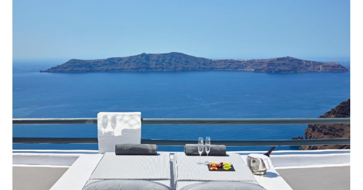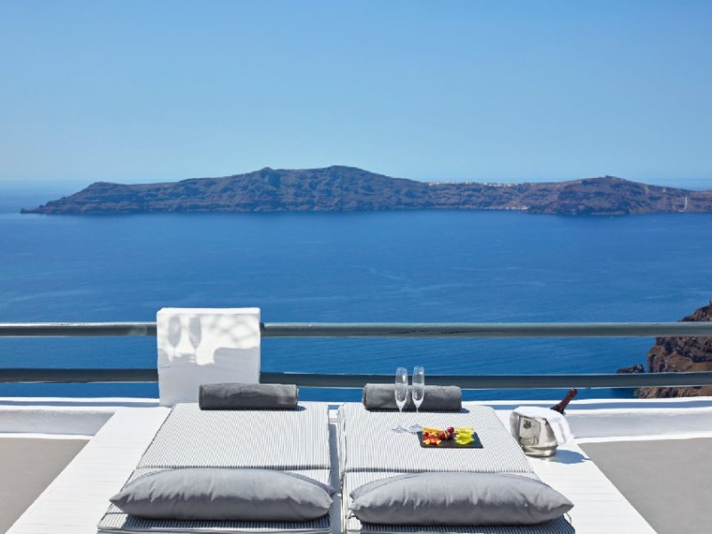 Localizare HOTEL SUN ROCKS (couples only): Hotelul este ideal pozitionat in Firostefani, la mai putin de 1 km de Fira, capitala insulei si la 15 km de Aeroportul din Santorini si de portul Athinios.
