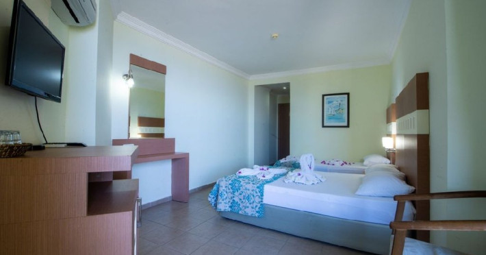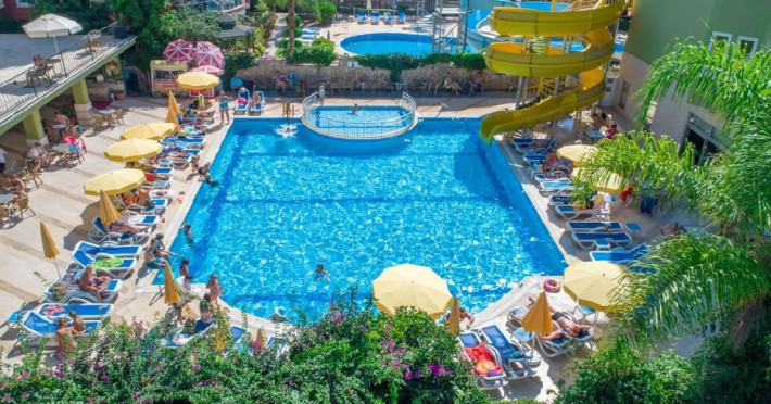 Facilitati hotel: Oaspetii pot beneficia de restaurant, restaurant A La Carte, piscina exteroara, tobogane, sezlonguri si umbrele, centru fitness, centru spa, teren de voley, tenis de masa, darts, biliard.