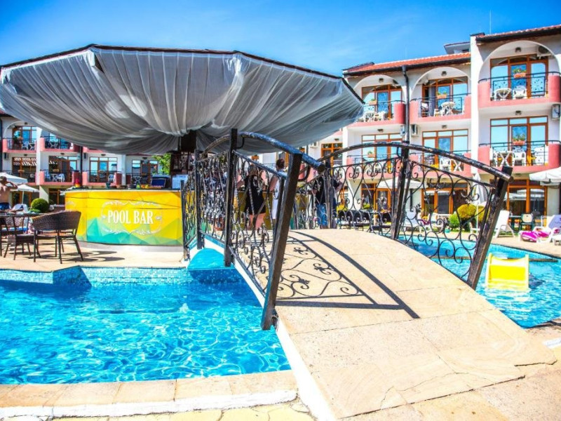 Localizare: Situat in Sunny Beach, la 150 de metri de plaja. Proprietatea se afla la 2,5 km de parcul acvatic Action si la 5 km de plaja Cacao. Centrul statiunii Sunny Beach este situat la 2 km de complex. Facilitati hotel: Complexul pune la dispozitia turistilor piscina sezoniera in aer liber, WiFi gratuit in zonele publice ale complexului, parcare privata (contra cost), restaurant, gradina si bar. Complexul Sunrise ofera la un cost suplimentar diverse alte facilitati, printre care servicii de masaj si inchirieri auto. Sunt disponibile programe de divertisment si un club pentru copii. Dotari camere: Camerele sunt dotate cu TV prin cablu, zona de relaxare, baie cu dus sau cada si articole de toaleta gratuite, balcon.