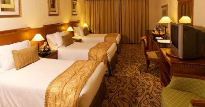 Localizare: in zona Bur Dubai, la 6 km de aeroportul international Dubai. Facilitati hotel: 102 camere, 5 restaurante si baruri, piscina in aer liber pe acoperis, sauna, sala fitness, shuttle bus la Burjuman Shopping Centre si plaja publica Jumeirah. Camerele sunt echipate cu: baie, uscator de par, TV satelit, telefon, minibar, facilitati pentru preparare ceai/ cafea, aer conditionat, seif. Capacitate maxima camere: 2 adulti + 2 copii sub 6 ani sau 2 adulti + 1 copil 6 – 11,99 ani sau 3 adulti. Pentru copii nu se asigura pat suplimentar.