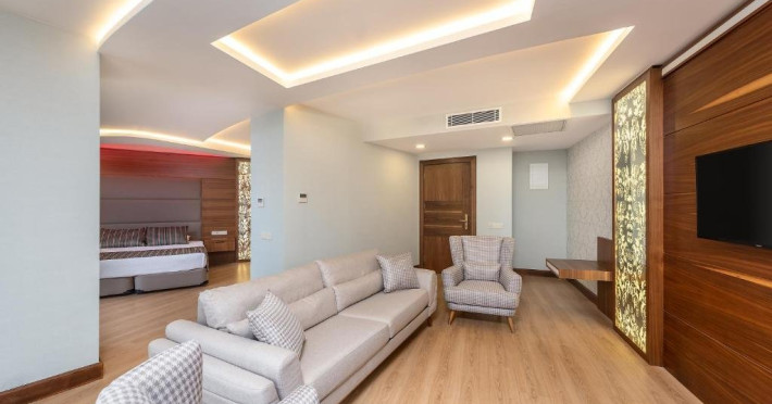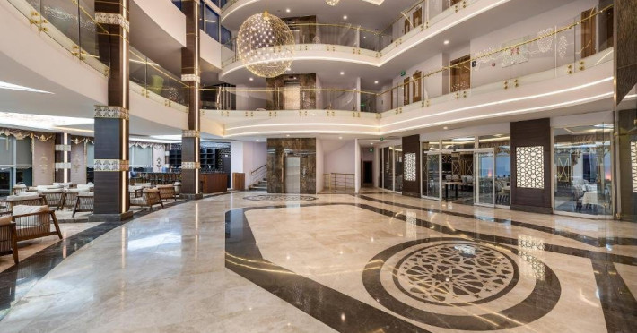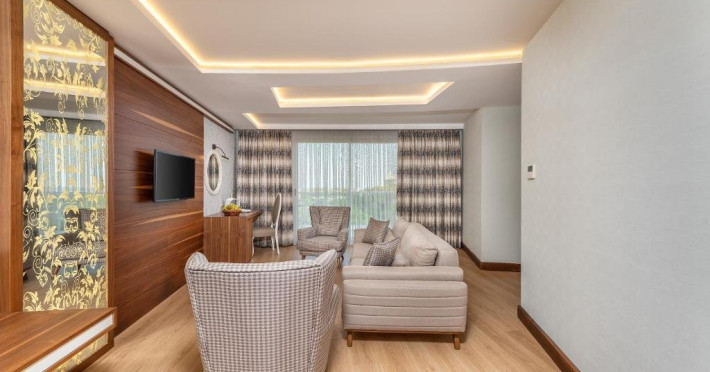 Facilitati hotel: Resortul dispune de urmatoarele facilitati: restaurant, bar, lounge, centru de spa si wellness, sala de intalniri, programe de divertisment pentru adulti si copii, piscina exterioara si aquapark, zona de plaja privata cu serviciu de transfer disponibil, sala de fitness, parcare privata gratuita, gradina, room service, receptie 24h, schimb valutar, hammam, loc de joaca pentru copii, tenis de masa, darts, serviciu rent a car.
