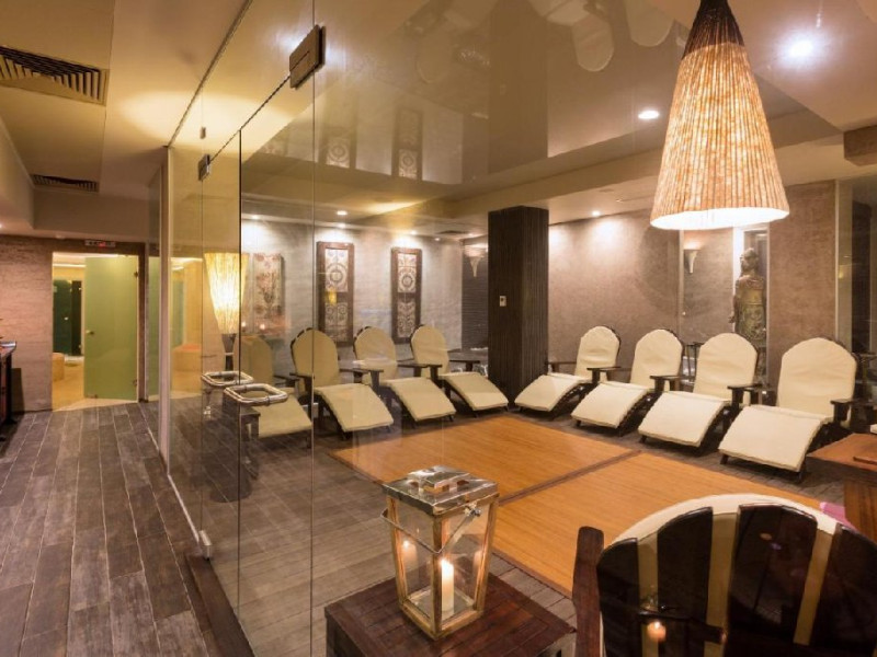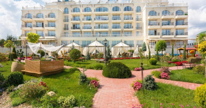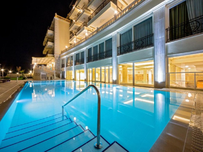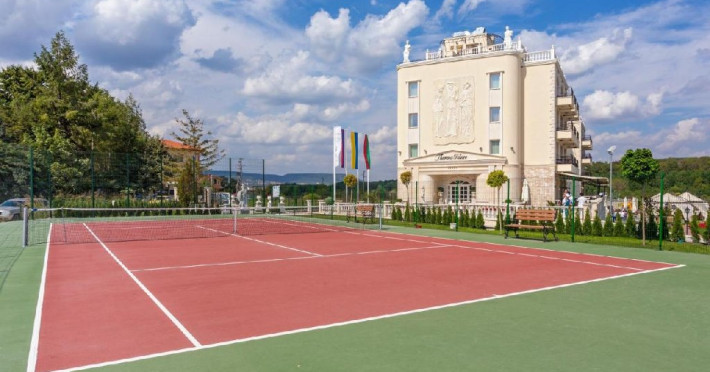 Localizare: Therma Palace este un hotel cu design unic, situat in Kranevo. Facilitati hotel: Hotelul pune la dispozitia clientilor piscina exterioara, restaurant, bar, teren de tenis (contra cost), teren de volei, sauna, piscina interiolara. Dotari camere: Camerele sunt dotate cu TV, zona de relaxare, baie cu cada, uscator de par, aer conditionat. Site web: https://www.thermapalace.com/