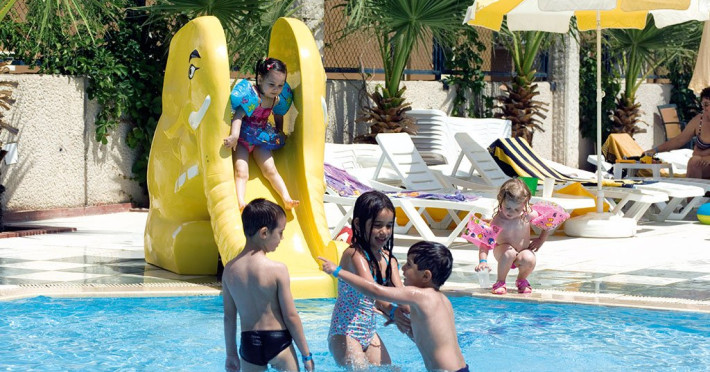 Facilitati copii: Piscina pentru copii, tobogane, mini club, loc de joaca.