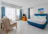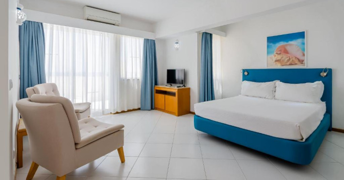 Apartamentele luminoase și liniștite includ camere de zi separate și chicinete dotate cu cuptor cu microunde, frigider și prăjitor de paine. Majoritatea unităților oferă vedere frontală sau laterală la mare.