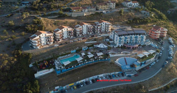 Locație pe malul mării: Tus'Hotel din Tusa oferă acces direct la malul mării, cu vederi uimitoare la mare. Oaspeții se pot relaxa pe terasa la soare sau pot inota in piscină cu vedere minunată. Proprietatea dispune de o grădină luxuriantă și un centru spa pentru relaxare.