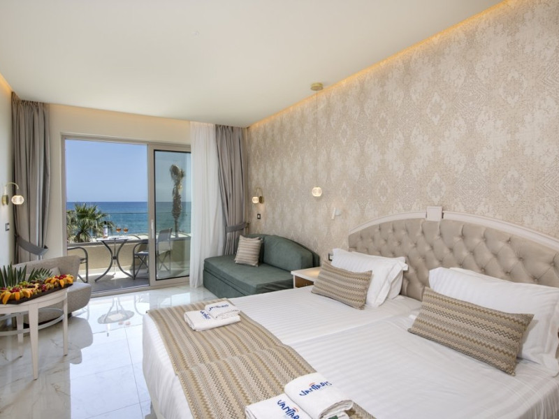 Localizare HOTEL VANTARIS BEACH: Hotelul este situat pe plaja, la 4 km de centrul statiunii Georgioupolis, la 45 de km fata de aeroportul Chania, 50 de km fata de orasul Chania si 18 km fata de orasul Rethymno. Statia de autobuz se afla la 20 de metri.