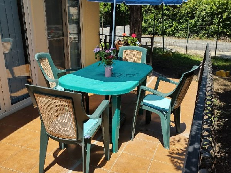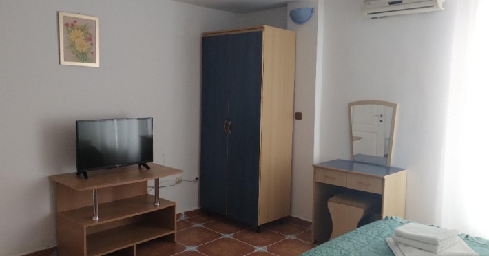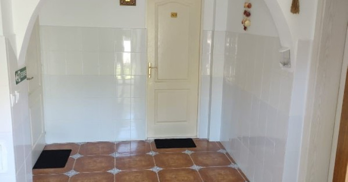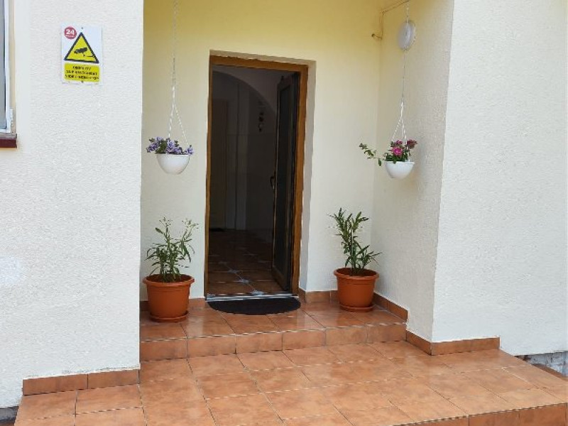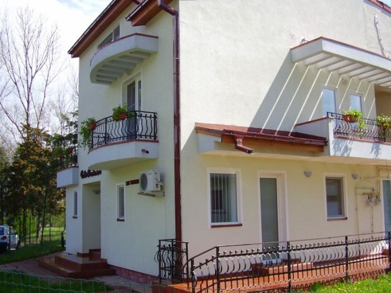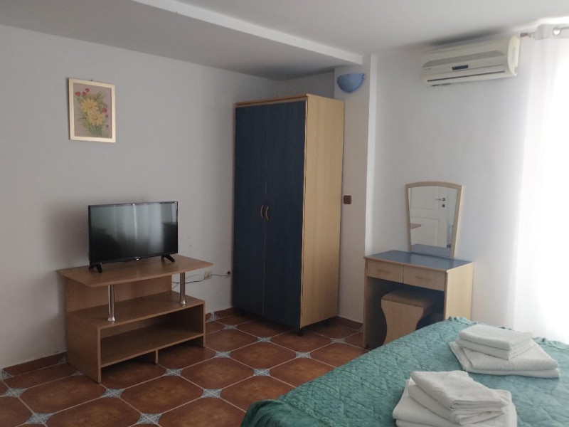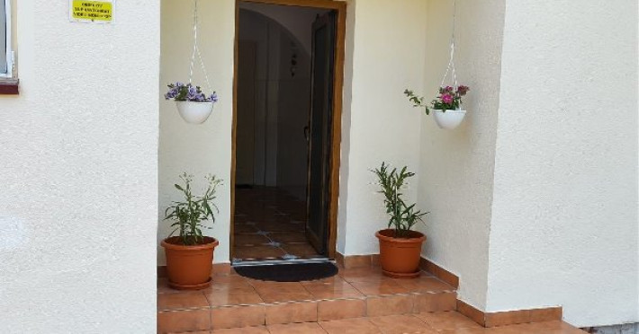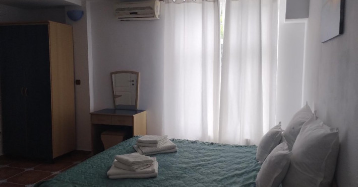 Facilitati : Vila dispune de spatii de parcare exterioare si centrala termica proprie. La parter : doua apartamente compuse din living (canapea extensibila), bucatarie utilata, baie si dormitor cu pat matrimonial.Tot la parter se afla si o camera dubla. La etaj : trei camere duble cu baie proprie si terasa.Camera dubla tip 1-cu terasa proprie si tip 2 cu terasa laterala. Toate spatiile de cazare sunt dotate cu aparate de aer conditionat, TV color-cablu si frigider.