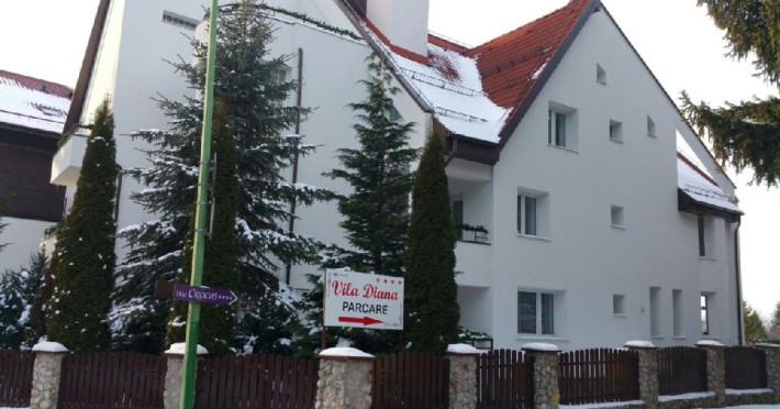 Vila Diana - Poiana Brasov este situata chiar la intrarea in statiunea Poiana Brasov, la 750 de metri de partia de schi Bradul si la 12 km de orasul Brasov. Oaspetii beneficiaza de WiFi gratuit in intreaga proprietate si parcare privata gratuita. Fiecare camera include un TV cu ecran plat si canale prin cablu, seif si minibar. Toate camerele au baie privata. Pentru un plus de confort, proprietatea ofera articole de toaleta gratuite, halate de baie si papuci. Oaspetii au la dispozitie o camera de bagaje cu depozit pentru echipamentele de schi. Personalul receptiei este disponibil nonstop. In timpul iernii, in apropiere exista partii de schi. Telecabina Capra Neagra este la 900 de metri de Vila Diana - Poiana Brasov. Cel mai apropiat aeroport se afla la 158 km, in localitatea Otopeni.