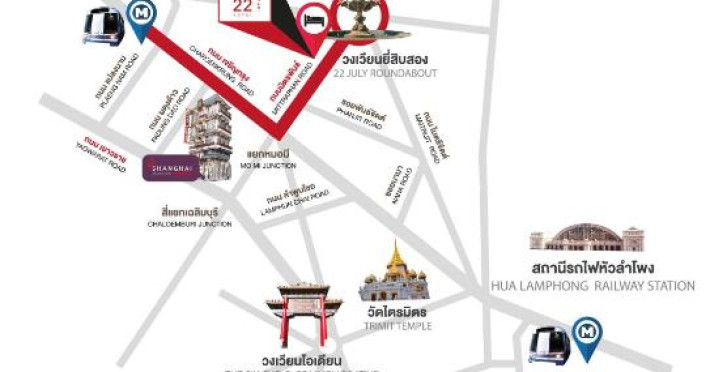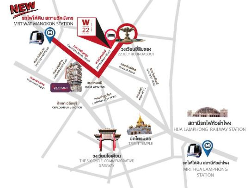 W22 by Burasari se află la 2,9 km de Casa Jim Thompson și la 3,2 km de Templul lui Buddah de smarald. Aeroportul Internațional Don Muang se află la 26 km.