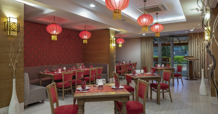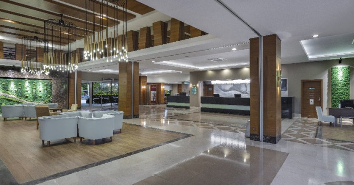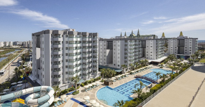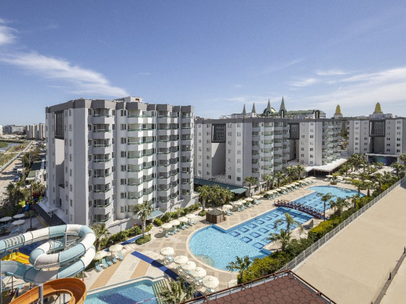 Facilitati hotel: Hotelul ofera oaspetilor sai urmatoarele facilitati: restaurant principal, 6 restaurante a la carte (pescaresc, italian, turcesc, asiatic, mexican, barbeque), baruri (printre care lobby bar, pool bar, bar pe ponton, disco bar), patiserie, inghetata, piscina exterioara pentru adulti, aquapark cu 4 tobogane, piscina pentru copii cu 4 tobogane, programe de animatie, centru Spa, baie turceasca, sauna, camera de jocuri, teren de tenis, teren de voley, fotbal, basket, handbal, tenis de masa, biliard, darts, centru fitness, sah, internet wi-fi, programe de animatie, mini club (4-8 ani), maxi club (8-12 ani), cinema, mini disco, loc de joaca, bufet pentru copii in restaurantul principal. Servicii cu plata: a doua rezervare pentru restaurantele a la carte, restaurantul a la carte Barbeque, bauturi alcoolice premium, biliard, masaj si alte tratamente in centrul Spa, jacuzzi, sala de jocuri, internet cafe, rent-a-car, spalatorie, centru comercial, room service, nocturna pentru terenul de tenis.