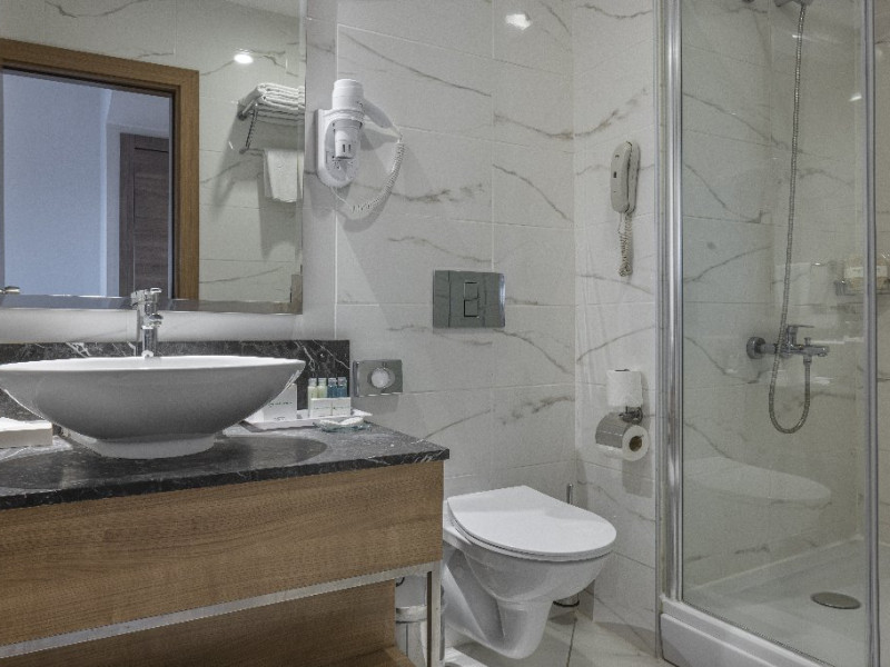 Dotari camere: Camerele hotelului dispun de: mini bar, seif, TV LCD, internet wi-fi, telefon, aer conditionat centralizat, uscator de par, balcon.