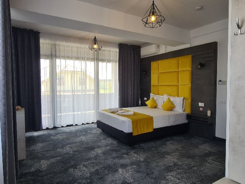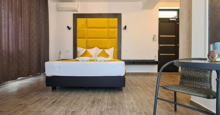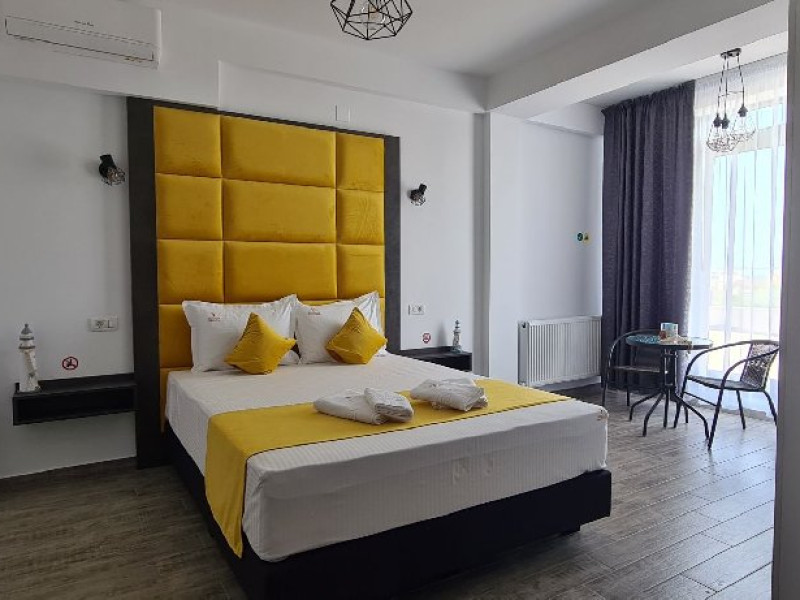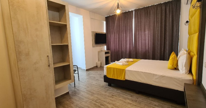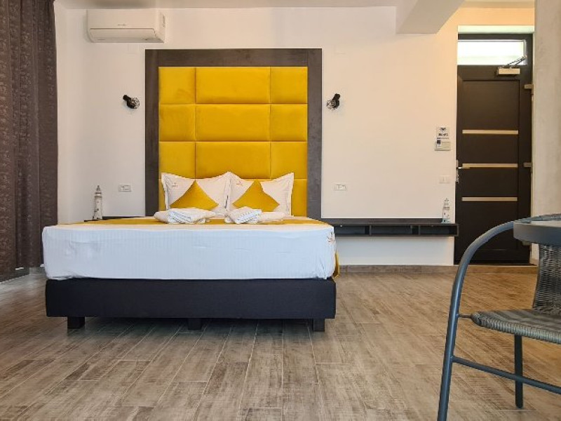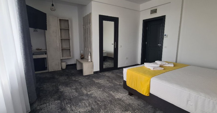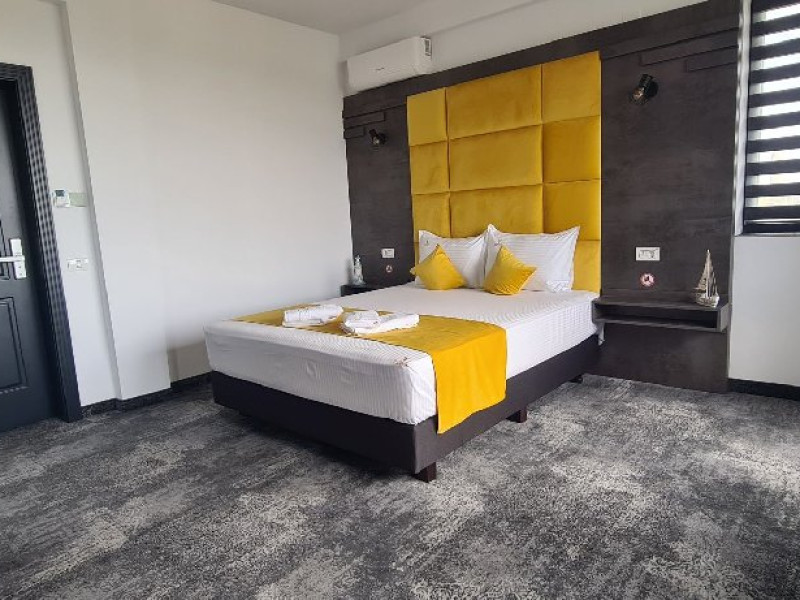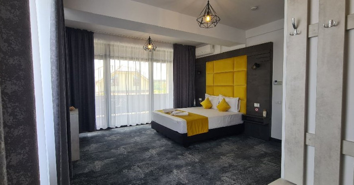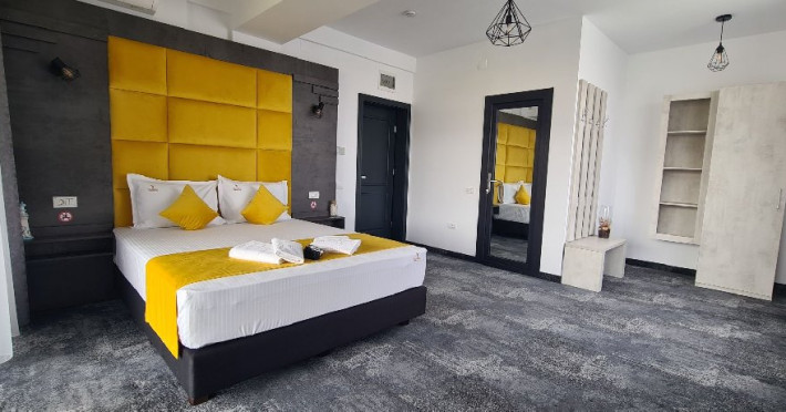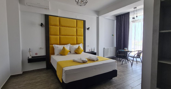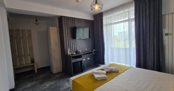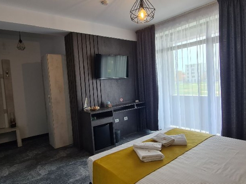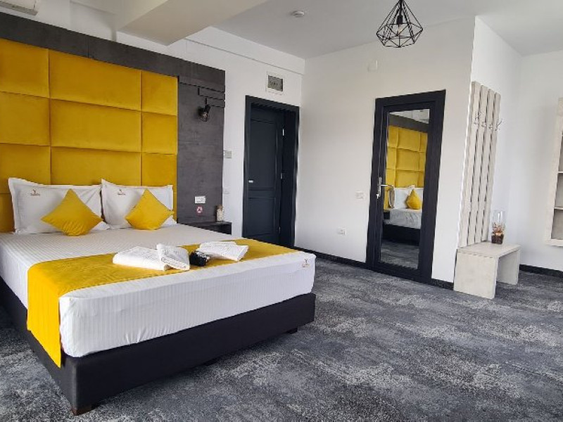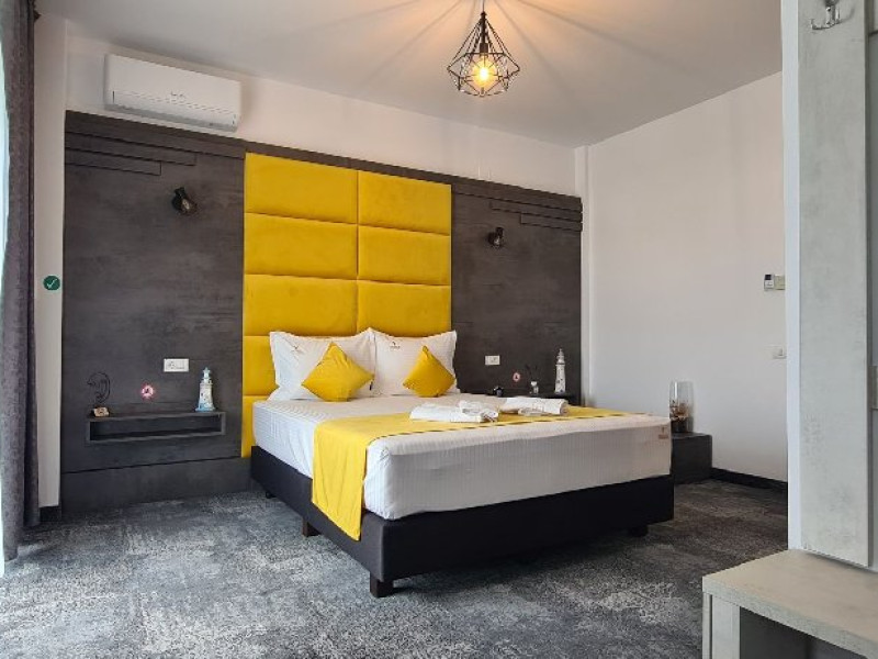 Dotari camere Spatiile de cazare sunt dotate cu pat matrimonial (160x200), aer conditionat, LCD tv cu cablu, seif, minibar, espressor, baie cu cabina de dus, uscator de par si obiecte de toaleta, terasa/balcon. Camerele duble cu balcon sunt situate la etajul 1. Suprafata 24 mp. Camerele duble cu terasa sunt situate la etajul 1 si 3. Terasa e generoasa cu o suprafata de 20-30 mp. Suprafata 26 mp.