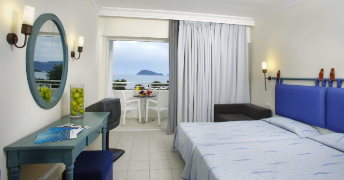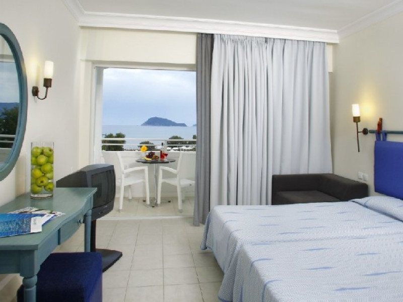 Dotari camere: Hotel Louis Zante Beach ofera camere duble cu vedere la gradina sau la mare si bungalow-uri, toate fiind dotate cu baie cu dus sau cada, telefon, aer conditionat (inclus), mini-frigider, uscator de par, seif (contra cost), TV, balcon. In bungalow-rile superioare (cu perete despartitor) pot fi cazati minim 3 adulti sau 2 adulti + 2 copii.