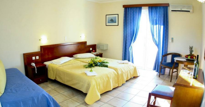 Dotari camere HOTEL ZANTE VILLAGE: Suprafata camerelor este intre 25-30 mp si sunt dotate cu pat suplimentar (poate fi pliant), baie, balcon, AC (gratuit), TV, frigider, safe (contra cost).Curatenia in camere se face zilnic, lenjeria si prosoapele se schimba de 2 ori/saptamana, wifi (gratuit).