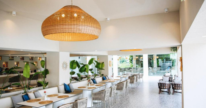 Locurile unde se poate lua masa cuprind o sală de mese, o cafenea și un bar. Clienții sunt răsfățați din punct de vedere culinar in restaurantul pentru nefumători cu aer condiționat și scaune inalte pentru copii. Se oferă spre rezervare regim all inclusive. La micul dejun, pranz și cină clienții se servesc la bufet sau aleg mancăruri din lista de bucate după propriul gust (la cină). La cerere pot fi pregătite mese fără gluten și feluri de mancare vegetariene. De asemenea, locul de cazare pune la dispoziție gustări. O atracție deosebită este gătitul in fața musafirilor. Băuturile alcoolice și nealcoolice sunt gratuite pentru clienți.
