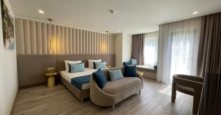 Aparatul de aer condiționat și sistemul de incălzire creează o atmosferă plăcută in camere. In majoritatea spațiilor de cazare clienții beneficiază de vedere spre mare de pe balcon sau de pe terasă. Camerele au un pat dublu. Sunt disponibile dormitoare separate. De asemenea, pot fi puse la dispoziție pătuțuri pentru bebeluși și paturi suplimentare. De asemenea, sunt disponibile un seif și un minibar. Pentru a inlesni aprovizionarea ocazională prin mijloace proprii, in spațiile de cazare există un frigider și un minifrigider. Telefonul, un televizor cu canale prin satelit/cablu TV și WiFi-ul (gratuit) oferă un concediu confortabil. In cameră se găsesc și papuci de casă. In baia dotată cu duș și cadă, clienților le stau la dispoziție un uscător de păr și o oglindă de machiaj. Articolele de cosmetică creează un confort deosebit in băi. Pentru familiile cu copii stau la dispoziție camere de familie.
