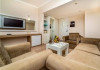 Facilitati hotel: Hotelul pune la dispozitia turistilor: 3 restaurante a la carte, baruri, aquapark, volei, volei pe plaja, tenis, baschet, teren de fotbal, gimnastica acvatica, polo pe apa, biliard, tenis de masa, darts, boccia, badminton, divertisment pentru copii, spectacole de animatie, seri tematice, petreceri pe plaja si muzica live, centru spa, masaj, baie turceasca.Inconjurat de natura, hotelul sustine o politica de cicloturism pentru a descoperi si a experimenta valoarea istorica si culturala a locului.