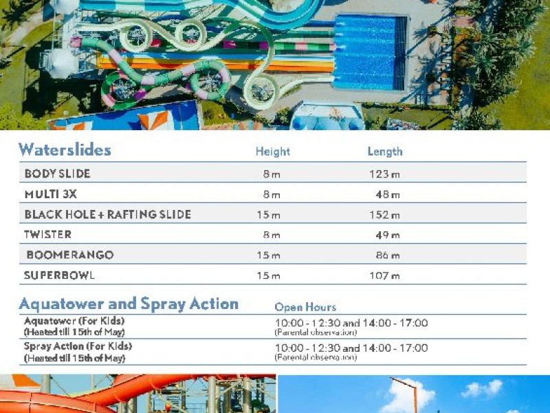 Facilitati copii: Hotelul pune la dispozitia copiilor: piscina interioara, piscina exterioara cu topogane, miniclub, loc de joaca pentru copii.
