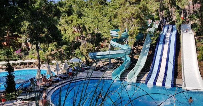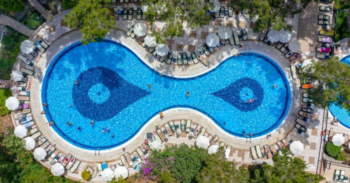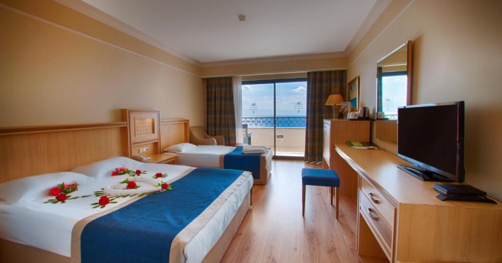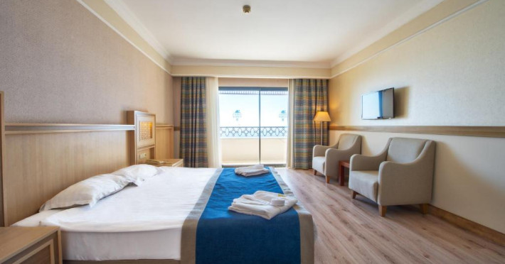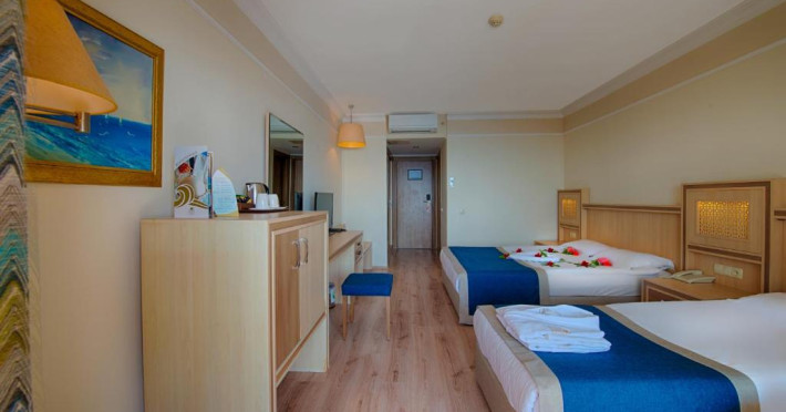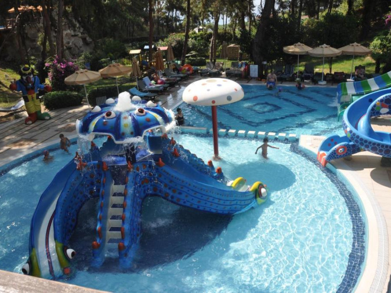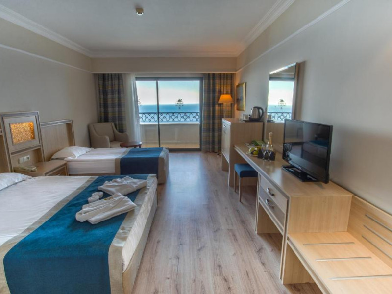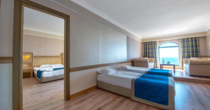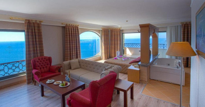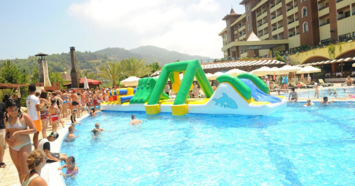 Hotelul Utopia World este situat pe un varf de stancă de pe Coasta Alanya si are vedere la Marea Mediterană. Numeroasele sale facilități includ o plajă privată cu steag albastru, cu 2 pontoane, piscine in aer liber cu un aquapark de 15.000 m² și un centru spa cu hamam tradițional. Situat in orașul antic Syedra, Utopia World oferă cazare de 5 stele.