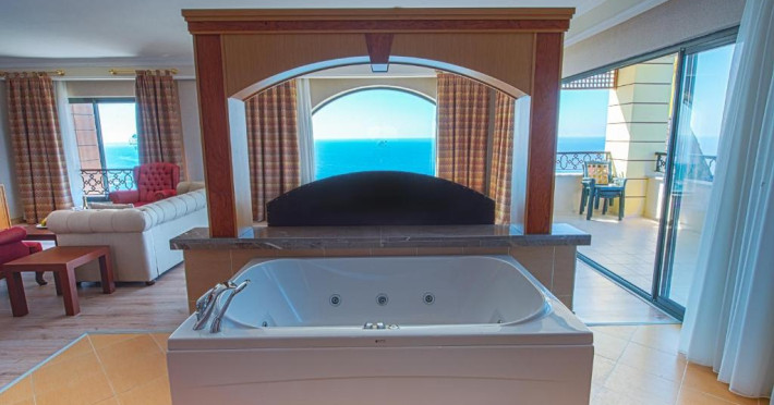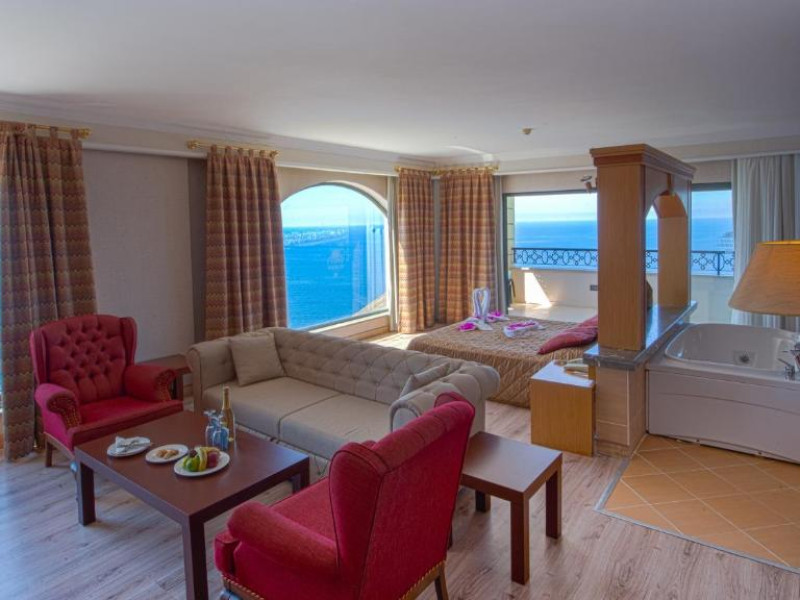 Camerele spatioase ale hotelului Utopia World sunt dotate cu mobilier modern si se deschid spre un balcon privat. Toate includ canale TV prin satelit, iar unele au un lounge separat si o cadă spa de lux. Toate camerele au vedere la mare sau la munte.