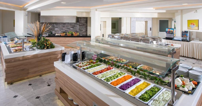 Facilitati hotel: receptie 24 de ore/zi, salon, colt vizionare TV, wi-fi in zonele publice (cu plata, 15 euro/saptamana), restaurant cu terasa, pool snack bar, piscina (10:00-19:00), sezlonguri si umbrele gratuite la piscina si cu plata pe plaja, prosoape pentru piscina si plaja (cu depozit), sala de conferinte, doctor (la cerere).