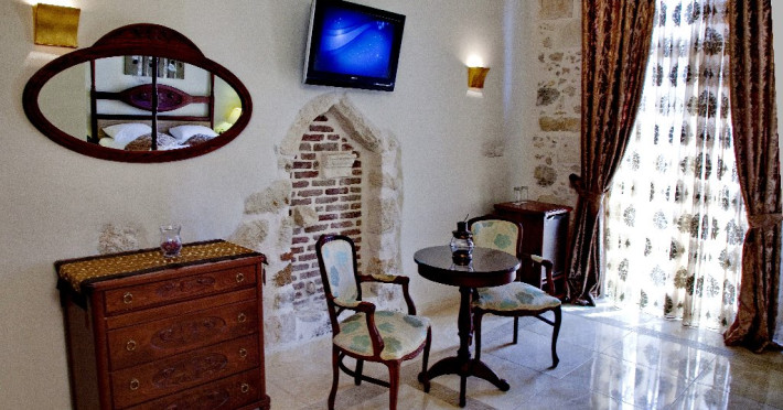 Descriere: Antica Dimora Suites ocupa un conac din secolul al XIX-lea si ofera unitati de cazare de lux in inima cartierului venetian din Rethymno. Oaspetii au la dispozitie unitati de cazare cretane traditionale. Localizare: Localizat in centrul istoric al orasului Rethymno (la aproximativ 350 m puteti gasi Krini Rimondi, gradina municipala, portul pitoresc venetian, precum si plaja cu nisip din Rethymno). Situat la 55 km de orasul Chania si 90 km de aeroportul din Heraklion. Dotari camere: Camerele si suitele sunt dotate cu aer conditionat, acces la internet wireless (gratuit), seif (gratuit), televizor si frigider. Baia este dotata cu uscator de par si dus sau cada cu hidromasaj. Cele mai multe unitati au balcon, iar unele au ferestre mari. Facilitati hotel: Micul dejun continental este servit zilnic in zona de luat masa a proprietatii. Zona piscinei este inconjurata de gradina si are o piscina impresionanta cu hidromasaj, umbrele si sezlonguri. Facilitatile/serviciile oferite de Antica Dimora includ un hamam (contra cost) si un bar langa piscina. Plaja: Plaja se afla la aproximativ 350 de metri de hotel. Sezlongurile si umbrelele sunt contra cost.Clasificare oficiala: 5* Pentru anumite facilitati din hotel sau din camera, hotelierul poate solicita taxe suplimentare. In momentul sosirii la hotel solicitati receptionerului sa va informeze cu exactitate asupra lor. Website: www.anticadimora.gr