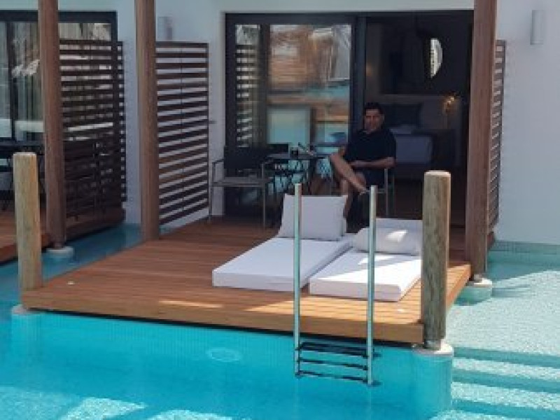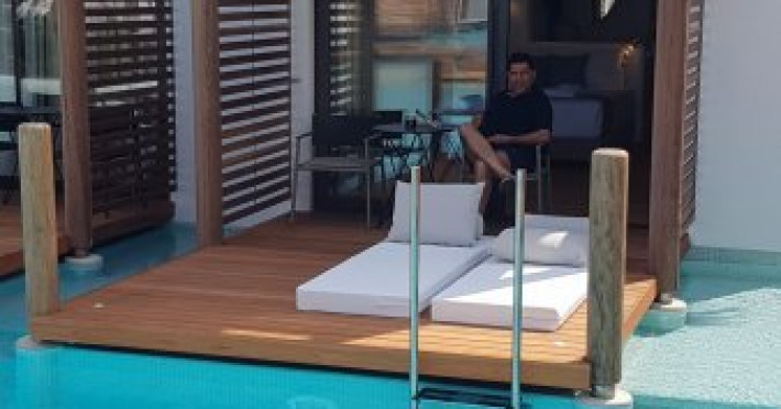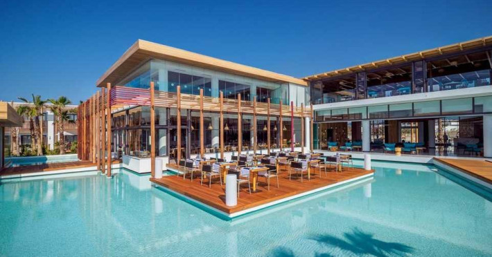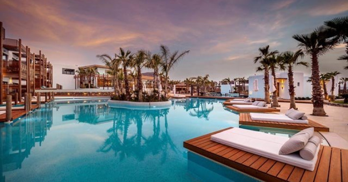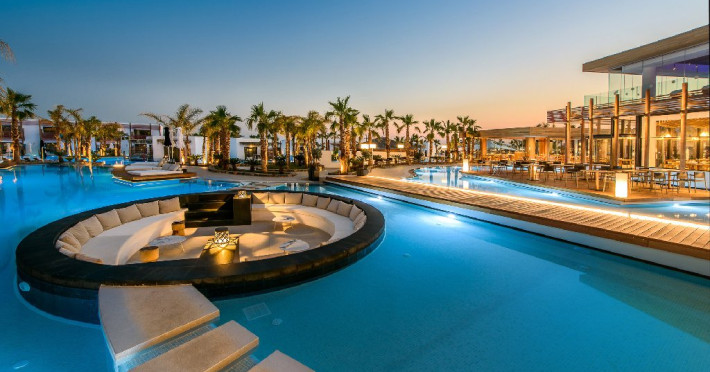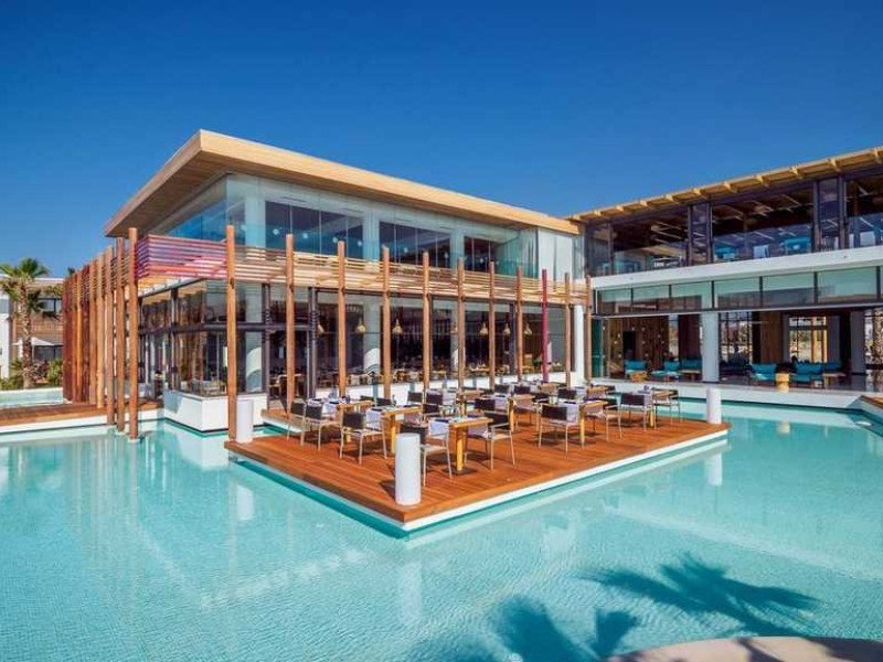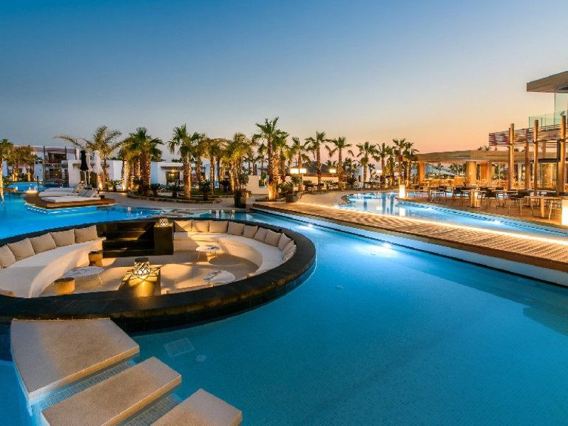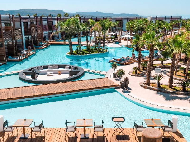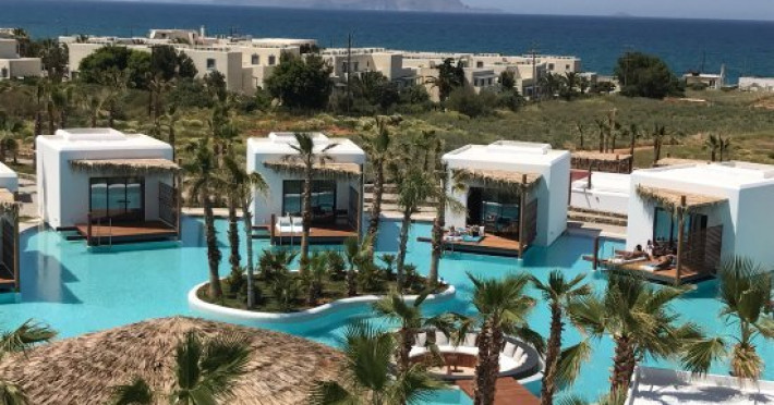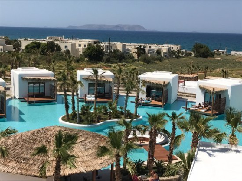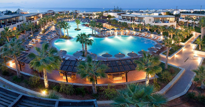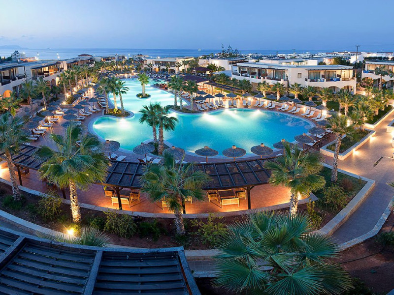 Descriere: Hotelul Stella Island Luxury Resort & Spa este o proprietate noua de 5 stele din zona linistita Analipsis, plina de palmieri, cu o arhitectura deosebita tip laguna, ce creeza o estetica exotica. Hotelul cazeaza numai turisti peste 15 ani. Hotelul dispune de waterpark (10:00 - 18:00) gratuit pentru clientii sai.