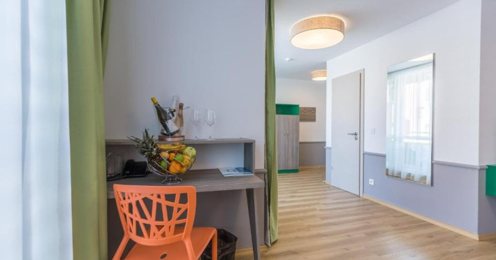 Dotari camere: Camerele dispun de aer conditionat, Tv cu eran plat, mini frigider si balcon.