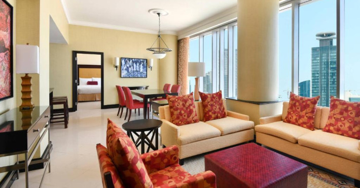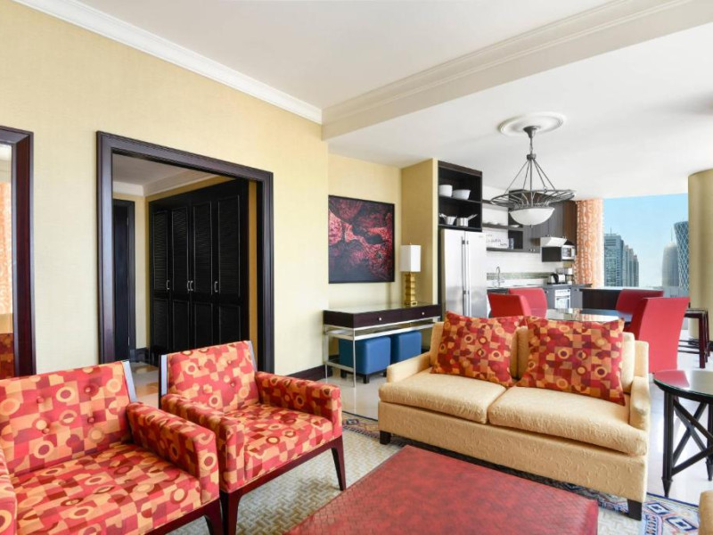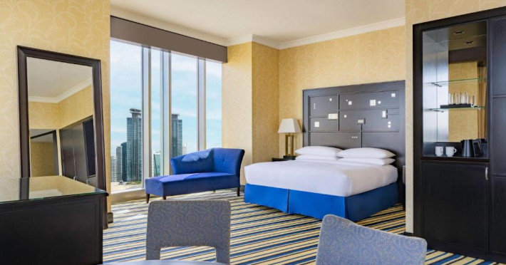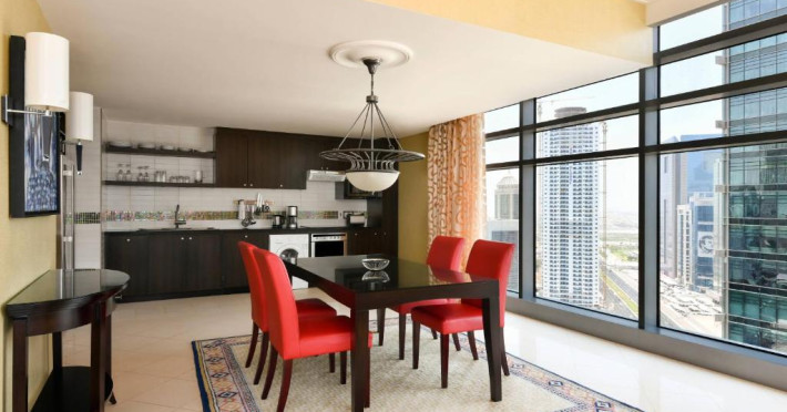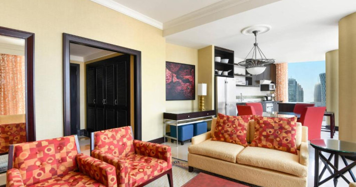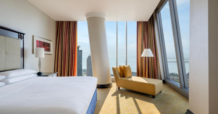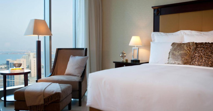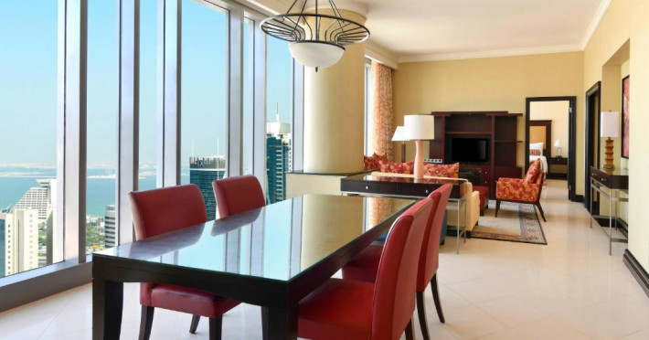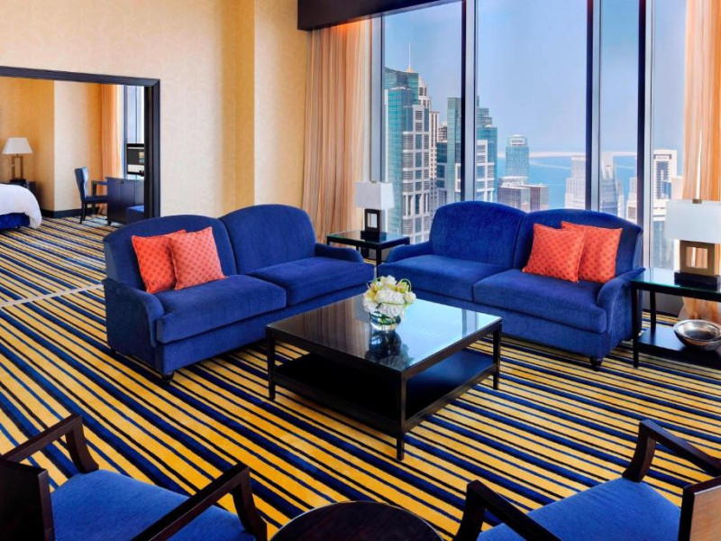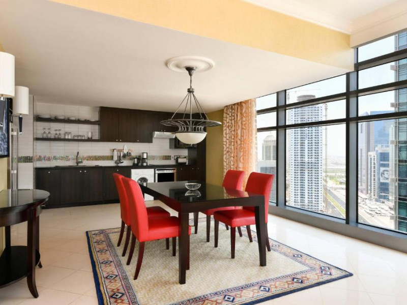 Acest hotel de 5 stele oferă facilități și facilități excepționale, inclusiv o piscină in aer liber de dimensiuni olimpice, o terasă mare pentru șezlonguri, o piscină interioară incălzită la etajul 44, cu vederi spectaculoase la Doha, un centru de fitness cu antrenori personali și oferta Saray Spa. tratamente de infrumusețare, masaje și o experiență autentică de hamam marocan.