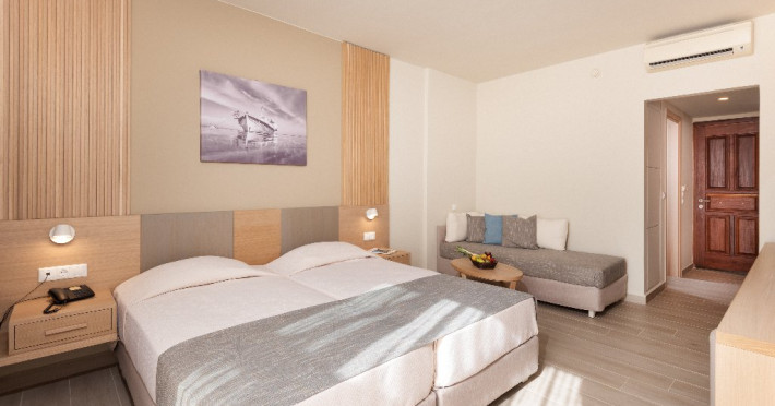 Descriere: Horizon Beach Resort este un hotel de 4 stele amplasat pe una dintre cele mai frumoase plaje din Kos, in zona Mastichari, oferind un sejur complet, intre relaxare si distractie. Resortul este intins pe un teren generos, cu gradini luxuriante si palmieri, oferind o atmosfera relaxanta si primitoare atat pentru familii, cat si pentru cupluri sau grupuri de prieteni. Cu servicii de calitate si facilitati moderne, hotelul promite vacante memorabile si momente de odihna la malul Marii Egee. Localizare: Hotelul este situat chiar pe plaja din zona Mastichari, la aproximativ 2 km de centrul satului Mastichari si la aproximativ 8 km de aeroport. Pozitia sa ofera acces direct la plaja si la frumusetile naturii locale, iar Kos Town se afla la o distanta usor accesibila pentru excursii de o zi. Dotari camere: Horizon Beach Resort dispune de camere spatioase si bungalouri construite in stil arhitectural egeean, oferind eleganta si confort. Tipurile de camere includ camere duble cu vedere la gradina, vedere laterala la mare, vedere la mare si camere familiale. Toate unitatile sunt dotate cu aer conditionat, TV satelit, frigider, telefon, uscator de par si balcon sau terasa cu vedere la gradina, piscine sau mare. Seiful in camera este disponibil (contra cost). Facilitati hotel: Hotelul ofera piscine exterioare pentru adulti si copii, sezlonguri si umbrele la piscina, multiple restaurante si taverne cu preparate internationale si grecesti, baruri si pool baruri pentru bauturi si gustari. Exista programe de animatie pe timpul zilei si seara, precum si activitati sportive si recreative organizate de echipa hotelului. Facilitati sportive includ terenuri pentru volei pe plaja, fotbal, baschet, terenuri de tenis (contra cost pentru unele) si mini golf. Pentru cei mici exista mini club si locuri de joaca, iar pentru relaxare se pot accesa zone de spa cu sauna, hammam si masaje (contra cost). In apropiere se pot practica sporturi nautice (contra cost). Exista si servicii precum inchiriere auto (contra cost), mini market, magazin de suveniruri si saloane de infrumusetare (contra cost). Site web: https://horizonbeachresort.gr/de/
