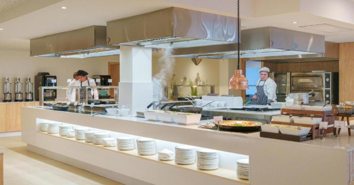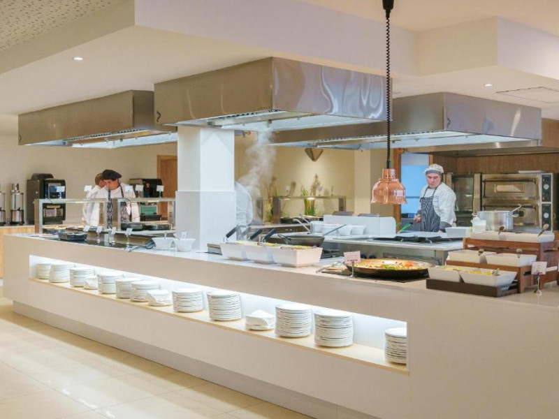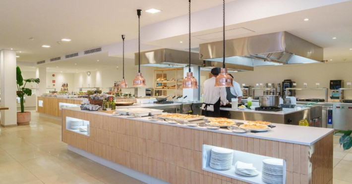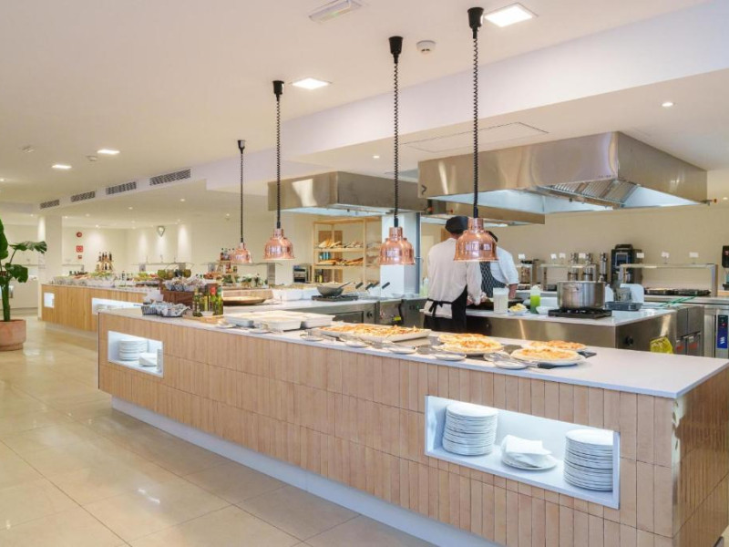 O gamă largă de preparate mediteraneene și internaționale sunt servite la restaurantul tip bufet al hotelului, cu bucătărie deschisă.