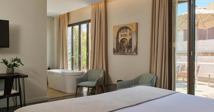 O altă atracție este locația conacului din secolul al XVIII-lea: o alee pietruită liniștită și un buzunar de liniște in mijlocul agitației din Palma. Baza ideală a orașului, Sant Jaume combină tot ce este mai bun din ambele lumi, astfel incat să vă puteți bucura de deliciile centrului palpitant al orașului intr-un moment și de atmosfera delicios de răcoare a hotelului in următoarea.