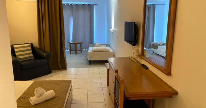 Toate camerele de la Cyprotel Faliraki sunt dotate cu televizor, aer condiționat și seif. Băile private includ uscător de păr și articole de toaletă gratuite.