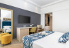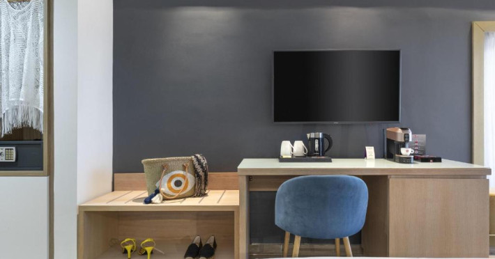 Camerele și suitele au decor minimal, in culori pastel și se deschid spre balcoane sau terase private. Acestea sunt dotate cu TV cu ecran plat, minibar și seif. Băile sunt moderne, spațioase și echipate cu uscător de păr.