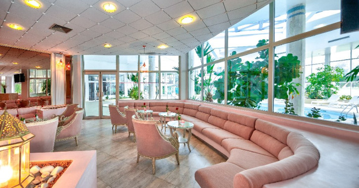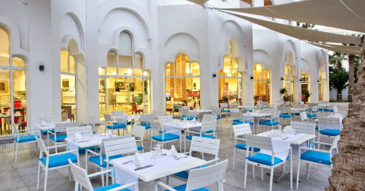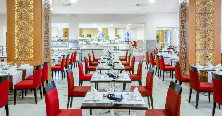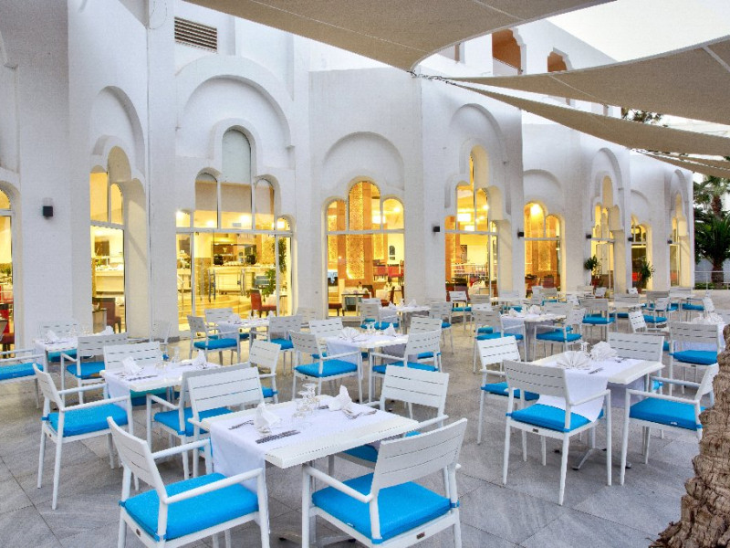 Hotel Hotelul dispune de receptie deschisa 24h/24, 4 lifturi, facilitati pentru persoane cu dizabilitati (la cerere, cu confirmare prealabila). In complex: piscina exterioara cu apa de mare, piscina pentru copii cu fantana, piscina interioara cu apa incalzita (in sezonul de iarna, contra cost suplimentar), sezlonguri, scaune, saltele si prosoape gratuite (prosoapele de plaja/piscina disponibile contra depozit). Facilitati: bar principal, bar la piscina, bar pe plaja, cafenea maura (contra cost suplimentar), restaurant principal cu terasa, sali de conferinte, seif la receptie (contra cost), schimb valutar, biblioteca. Wi-Fi gratuit pe intreg domeniul hotelului.