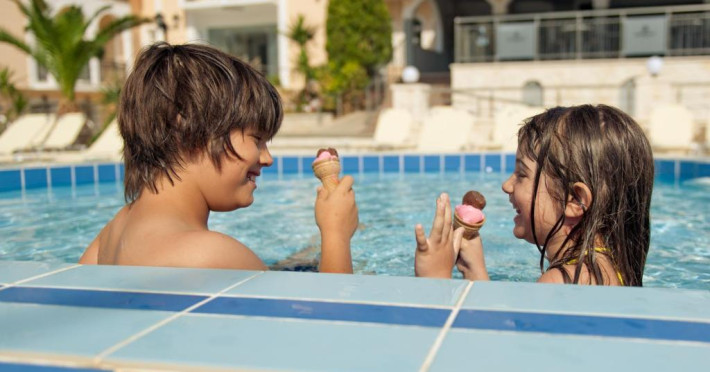 Oaspetii pot lua micul dejun si cina in stil bufet, acestea fiind servite la restaurantul hotelului sau in zona de luat masa. Barul de la piscină oferă diverse gustări si băuturi, iar langă receptie este disponibil si un bar interior. Zona piscinei este amenajată cu sezlonguri si umbrele de soare gratuite, unde oaspetii pot savura băuturi răcoritoare.