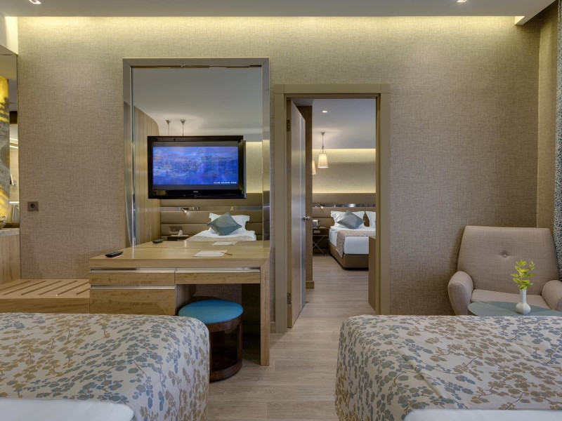 CLUB GRAND AQUA este cea mai recenta adaugare la hotelurile Sezer Group, fiind situata in locatia atractiva din Colakli, care este cunoscuta pentru plaja sa frumoasa de nisip, cu o intrare treptata in mare. Acesta este adiacent hotelului partener Club Grand Side, unde oaspetii pot folosi servicii, inclusiv un parc acvatic. Piscina unica, construita in stilul unui rau lenes si care curge de-a lungul intregii zone, va va invita sa faceti o baie. Hotelul are propria ferma ecologica si produce propria sa branza.