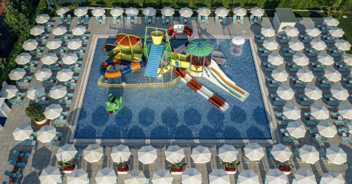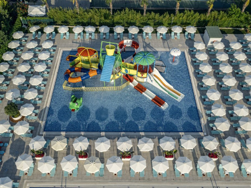 Facilitati hotel: Hotelul ofera oaspetilor sai urmatoarele facilitati: restaurant principal, 6 restaurante a la carte (italian, turcesc, mexican, pescaresc, oriental, barbeque), baruri, patiserie, piscina exterioara pentru adulti, piscina pentru copii cu 3 tobogane, aquapark cu 4 tobogane, piscina interioara, hammam, sauna, teren de tenis, teren de baschet, volei pe plaja, teren de fotbal, centru fitness, biliard, tenis de masa, darts, sah, programe de animatie, spectacole seara, cinema pentru copii, biblioteca, internet wireless, piscina cu topogane, club pentru copii (4-8 ani si 8-12 ani), mini disco, cinema, loc de joaca pentru copii, bufet pentru copii in restaurant. Servicii cu plata: restaurantul a la carte Barbeque, a doua rezervare pentru restaurantele a la carte, room service 24h, bauturi alcoolice premium, bauturile de import, jacuzzi, tratamente in centrul SPA, masaje, echipament de tenis si nocturna, sala de jocuri, doctor, coafor, internet cafe, spalatorie, magazine, sali de conferinta, pavilioane pe plaja.