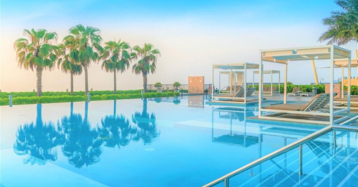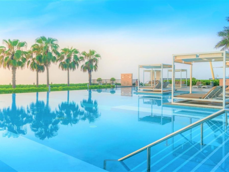 3 piscine exterioare cu apa dulce (sezlonguri, umbrele si prosoape gratuite)