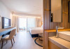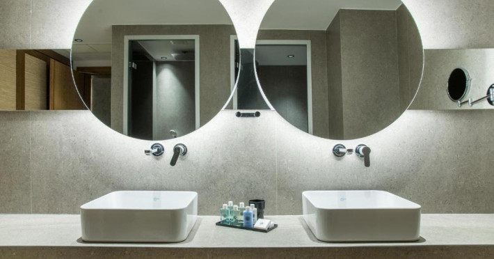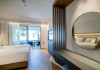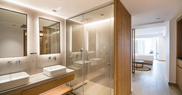 Camerele de la acest complex sunt echipate cu televizor cu ecran plat cu canale prin satelit și cutie de valori. Camerele de la AKASHA Beach Hotel & Spa au o baie proprie cu duș și articole de toaletă gratuite, iar anumite camere oferă și o vedere la oraș. Toate unitățile includ un dulap pentru haine.