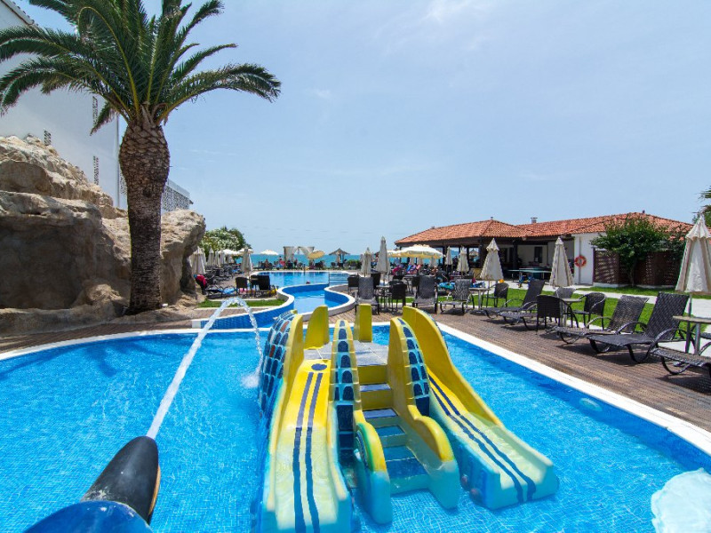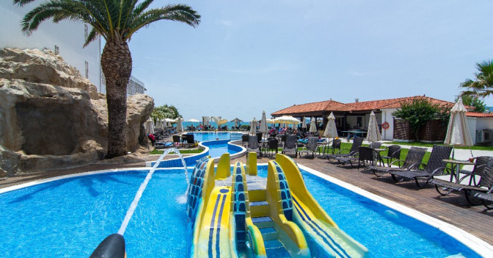 Descriere: Galaxy Beach Resort este o statiune potrivita pentru familii, care ofera o zona extinsa selectie de camere si apartamente de lux in cele trei cladiri adiacente ale complexului, toate dotate cu mobilier modern si cu aer conditionat individual, Wi-Fi gratuit, TV prin satelit si balcon. In plus, oaspetii se pot bucura de mai multe facilitati la fata locului, cum ar fi doua restaurante, un bar la piscina si pe plaja, un bar in gradina pe acoperis, o noua sala de sport si optiuni de divertisment de seara. Oaspetii au, de asemenea, acces la un centru spa si centru de wellness la proprietate din apropiere.